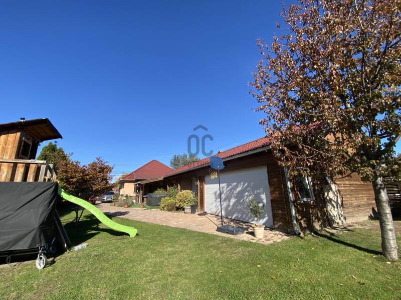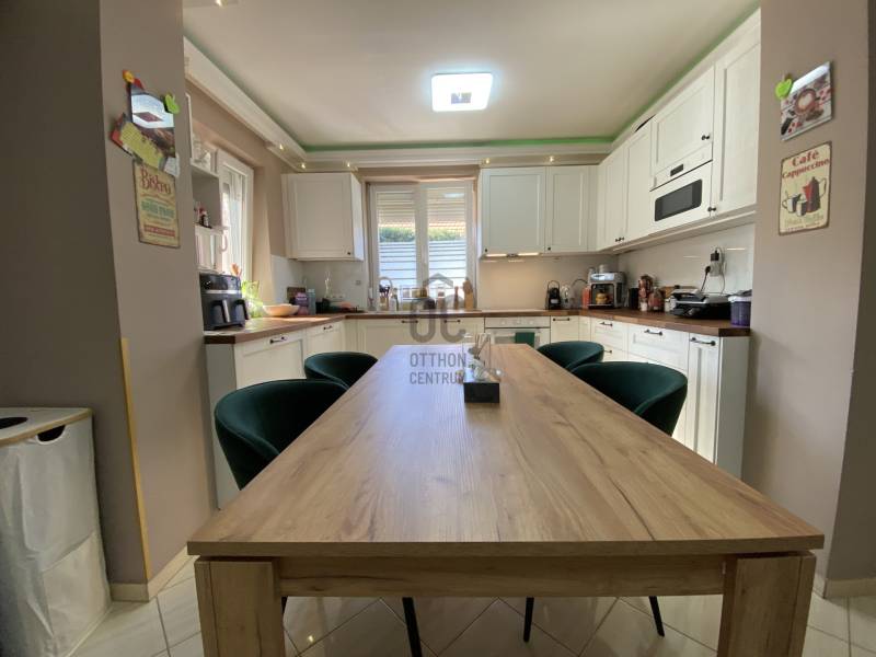 Földszintes álomOtthon GödönGöd a Dunakanyar kapuja, egy festői szépségű bűbájos kertváros a Főváros biztonságot nyújtó közelében.Csodálatos természeti adottságaival, jó nevű iskoláival, pezsgő Duna-parti életével, madárcsicsergős, jó levegőjű hétköznapjaival vált a családalapítók és kiköltözők kedvelt célpontjává.Itt, Felsőgöd szívében került eladósorba egy újjáépített, megkapó hangulatú családi ház.Rendezett, családi házas utcában, tisztes porták szomszédságában, jól ellátott területen kapott helyet.Majd\' 900m2-es kertjét automata kapuval felszerelt míves kovácsoltvas kerítés őrzi, viacoloros autóbeállójáról megközelíthető a 2 autó parkoltatására alkalmas duplagarázs, de a mediterrán térkövön további 3-4 autó parkoltatható kerten belül.A kert gyönyörűen karbantartott, rózsatövek és örökzöld dísznövényekkel ültetett lugasok emelik hangulatát. Kerti tároló gondoskodik a szerszámok elhelyezéséről, gyűrűs kút pedig a kényelmes pázsit gondozásról. Egészséges, beállt thuja sövény, épített játszótér, hatalmas medence, és jakuzzi is szolgálják a Család nyugalmát, ezek mind a vételár részét képezik!A ház 185m2-es, FÖLDSZINTES elrendezésű, Tulajdonosai minőségbeli maximalizmusának méltó tükreként egyedi hangulatvilágú Otthont teremtettek a 2016os teljes átépítés során.3 hálószoba (16m2,18m2,25m2!), 2 fürdőszoba, gardróbhelyiség, hatalmas nappali, spejz, konyha-étkező, és tágas előszoba alkotják a helyiséglistát.A fűtésrendszer megújult, kondenzációs cirkókazán került behelyezésre, a hidegburkolatok alatt padlófűtéssel, hálószobákban radiátoros hőleadókkal.Külső dryvit hőszigetelés, KLÍMA, redőnnyel és szúnyoghálóval is felszerelt műanyagtokos hang és hőszigetelő nyílászárók, rusztikus beltéri ajtók, kamera és riasztórendszer, magasfényű gépesített konyhabútor!Kiváló tájolásának köszönhetően egész nap világos, fedett teraszán az egész család kényelmesen fogyaszthatja a nyáresti vacsorát.Jöjjön el, nézze meg, ha nagy terekre vágyik, ha nem akar felújítani, ha madárcsicsergős bájos utcában tervezi Családja jövőjét egy magas felszereltségű, nagybetűs OTTHON-ban!Vigyázat! -abszolút beleszeretős!Közelben: MINDEN: vasútállomás ( Bp Nyugati PU 30p), városi buszjárat megállója ( Bp.Újpest Városkapu 40p), iskola, óvoda, orvosi rendelő, posta, strand, teniszpark, bicikliút, játszótér, lovarda, bevásárlási lehetőségek, pékség, street gym park.Budapest autópályán 25 perc alatt elérhető, autópálya lehajtó 6perc!