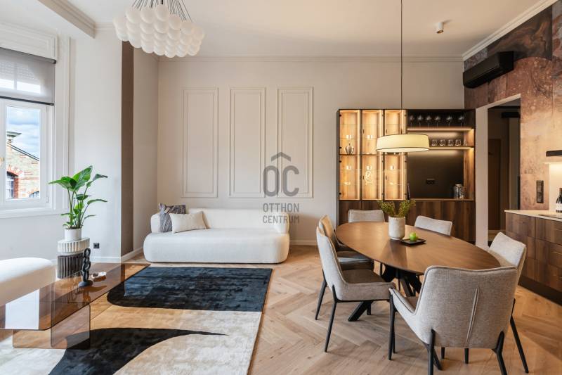 A Batthyány térközelében, a Markovits utcában, szép épületben, a DUNA-PARTTÓL néhány lépésre található ez a 87 négyzetméteres, 3 szobás, 2 fürdőszobás, teljes körűen felújított és magas színvonalon berendezett otthon.A lakás 2. emeleti elhelyezkedésének köszönhetően rendkívül világos, és több irányból is gyönyörű PANORÁMÁT kínál – az egyik oldalról a PARLAMENT, a másikról a HALÁSZBÁSTYA látványa tárul elénk. A lakberendező által megtervezett tér harmóniája, a természetes anyaghasználat és a modern technológia elegáns egységet alkotnak.A tágas amerikai konyhás nappali központi élettérként szolgál, amelyet egyedi gyártású bútorok, tölgyfa parketta és bioetanol kandalló tesz különlegessé. A nyílászárók prémium minőségű borovi fenyőből készültek, ELEKTROMOS REDŐNYÖKKEL és korszerű hőszigeteléssel.A lakás 2 különálló hálószobával rendelkezik, amelyek mindegyike csendes, kényelmes és jól szeparált. A két fürdőszoba eltérő hangulatú: az egyik modern, üvegfallal elválasztott tusolóval, a másik exkluzív, szabadon álló káddal készült.A konyha Bosch gépekkel felszerelt, a fűtésről padlófűtés és kombi gázkazán gondoskodik, a hűtést minden helyiségben külön szabályozható klíma biztosítja. Az ingatlan teljes berendezéssel és dekorációval együtt kerül értékesítésre, így az új tulajdonos azonnal birtokba veheti.A társasház jó állapotú, folyamatosan karbantartott, kulturált lakóközösséggel és rendezett közös terekkel. A környék hangulatos kávézói, éttermei és a közeli Duna-part egyaránt hozzájárulnak ahhoz az életérzéshez, amelyet ez az otthon képvisel: a klasszikus budai elegancia és a modern luxus kifinomult találkozása.Egyedi igényekre szabott lakáshitelekkel állunk rendelkezésére.Bankfüggetlen Hitelcentrumunk az országban elérhető összes bank és hitelintézet ajánlatát versenyezteti az Ön számára díjmentesen.Munkatársaink nagy szakmai tapasztalattal, teljes körű CSOK PLUSZ és OTTHON START PROGRAM ügyintézéssel várják Önt előre egyeztetett időpontban akár a normál munkaidő után is.