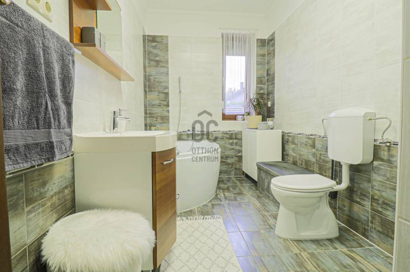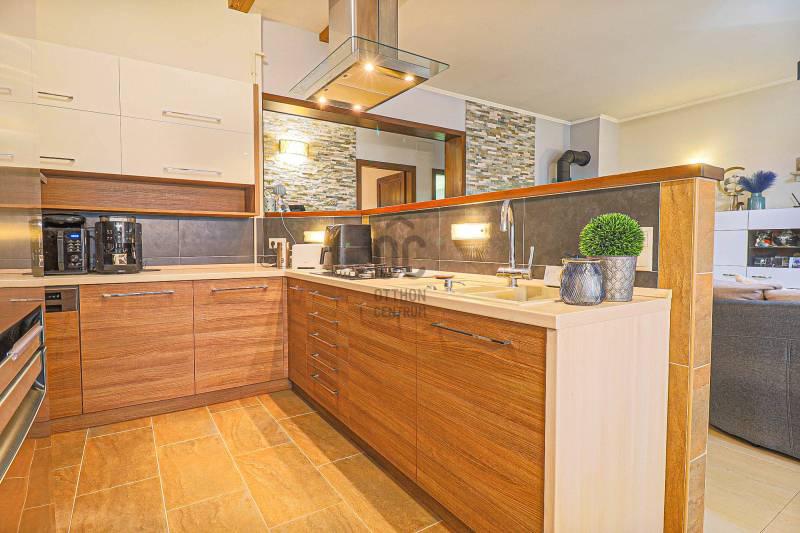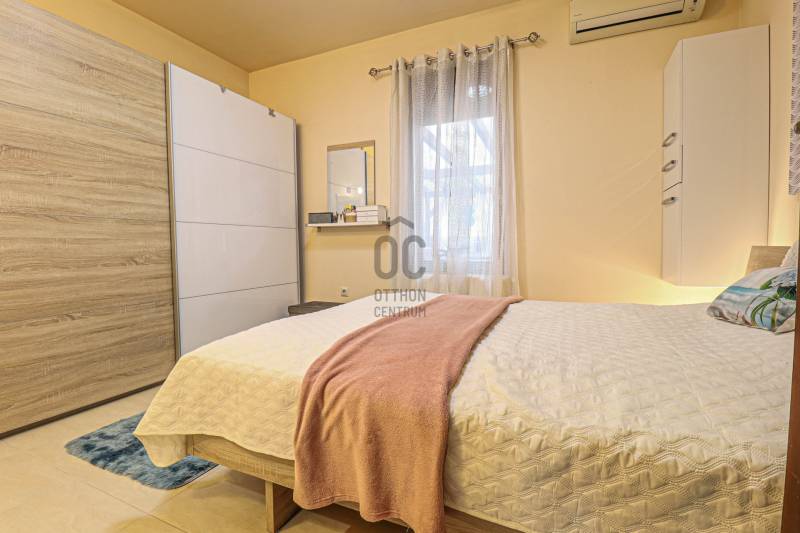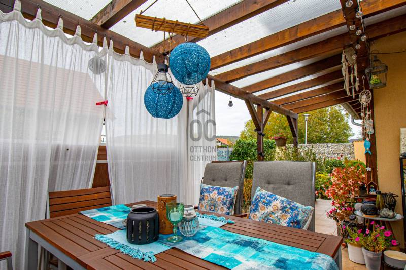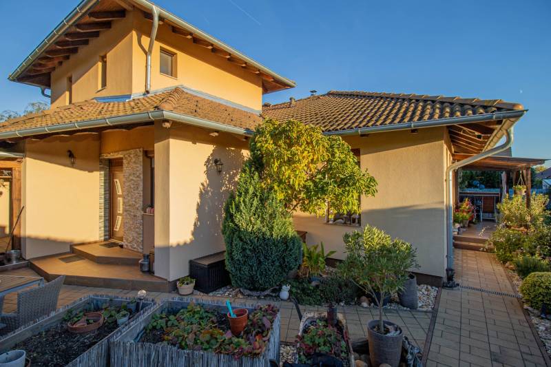 Soprontól mindössze néhány kilométerre az Alpok lankáinál kerül eladásra egy mediterrán stílusú családi ház.AZ INGATLAN JELLEMZŐIÉpítés éve: 2013Kétszintes, nettó 148 m² / bruttó 185 m² alapterület38-as Porotherm tégla építés, 10 cm-es szigeteléssel554 m2 telekHELYISÉGEK ÉS ELRENDEZÉSFöldszint:Amerikai konyhás nappali teraszkapcsolattal3 hálószoba, az egyik saját fürdőszobávalFürdőszoba + külön toalettKamra, háztartási helyiség (gépesített, vízlágyítóval és ivóvíz rendszerrel)Emelet:1 szoba1 tárolóKÜLÖN LAKRÉSZ:26,8 m²-es, külön bejárattal, saját konyhával és fürdőszobával➡️Ideális két generáció együttélésére vagy vállalkozás, rendelő, iroda kialakítására is.MŰSZAKI FELSZERELTSÉGFűtés: padlófűtés, Vaillant kazán (2024-es csere)Hangulatos öntöttvas kandalló Melegvíz: 180 literes tároló4 db hűtő-fűtő klímaRiasztó- és kamerarendszerBorovi fenyő beltéri ajtók, Rehau műanyag bejárati ajtóLépcső alatti beépített szekrény, padlás tárolási lehetőséggelKERT ÉS KÜLTÉR25 m²-es fedett terasz dombokra és naplementére néző csodás kilátássalMedence (3×1,2 m), kerti zuhany, tűzrakó / grillezőKét kerti tároló: 7,8 m² és 7,1 m²Kutyakennel: 3×2 mGarázs és fedett előgarázs (Hörmann kapukkal)Kút, amely biztosítja az öntözéstKonyhakertLOKÁCIÓA ház zöldövezeti, csendes környezetben található, mégis rövid autóútra Soprontól. A település kiváló infrastruktúrával rendelkezik – bölcsőde, óvoda, iskola, orvosi ellátás, posta, üzletek és éttermek mind helyben megtalálhatók.A közösségi élet aktív, rendszeres rendezvényekkel, sportolási lehetőségekkel és túraútvonalakkal.A közelben Natura 2000-es természetvédelmi terület és horgásztó kínál kikapcsolódást a természet szerelmeseinek.Tökéletes választás mindazoknak, akik a természet közelségét és a városi infrastruktúra előnyeit egyszerre szeretnék élvezni.Hitelre van szüksége?Az Otthon Centrum az ország egyik legnagyobb és legmegbízhatóbb hitelközvetítőjeként, teljes körű és díjmentes hitelügyintézéssel, biztosításkötéssel áll rendelkezésére!Kérje személyre szabott ajánlatunkat Kollégáinktól!