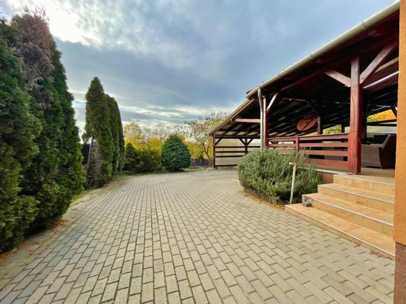 Esztétikus és magas felszereltségű családi ház eladó Őrbottyán központjában!Az ingatlan egyedi tervek alapján épült 2005-ben, egy összközműves, 991 nm-es telekre. A 168 nm-es, 5 szobás ház tégla építésű, 5 cm hőszigeteléssel ellátott. Fűtéséről és melegvíz-ellátásról kondenzációs gázkazán gondoskodik, a közös helyiségekben és fürdőszobákban padlófűtéssel, hálószobákban radiátor hőleadókkal. A napelem rendszernek és a ház adottságainak köszönhetően a rezsi rendkívül alacsony.A földszinten hűtő-fűtő klíma, a tetőtérben rejtett beltéri egységgel rendelkező klíma biztosítja a kellemes hőmérsékletet.További műszaki adatok: - műanyag nyílászárók alumínium redőnyökkel és szúnyoghálóval- biztonsági bejárati ajtó,- magas minőségű beltéri ajtók, burkolatok- riasztó és kamera rendszer- BWT vízlágyító rendszer- elektromos kapu és garázsajtó- öntözőrendszer a kertben- gépesített konyha- jacuzzi- beépített szekrények- dupla mosdós fürdőszobák- fedett 26 nm-es terasz- fedett, dupla kocsi beálló- gondozott növényzet- térkövezett udvarRöviden az otthonról:A házba belépve a közlekedőn át egy ízlésesen kialakított és meleg hangulatú térbe érkezünk, ahol 2 lépcsőfokos szinteltolással elkülönül a nagy étkező-konyha rész és a galériás kialakítás miatt, tágas és világos terekkel rendelkező, otthonos nappali. A földszinten helyett kapott egy hálószoba saját gardróbbal, fürdőszoba WC-vel, háztartási helyiség, ahonnan közvetlen átjárás vezet a 16 nm-es garázsba.A nappali impozáns eleme sötétszínű, kényelmes lépcső, amely a tetőtérbe vezet. Itt 3 hálószoba és egy zuhanyzó+WC kapott helyet, kis előtérrel. A szobák hangulata a tető összetett kialakítása miatt igazi elvonulós, pihenős, privát helyek a család kisebb-nagyobb tagjai számára.Télen-nyáron élvezhetjük a nappaliból és az udvarról is megközelíthető nagy, fedett teraszt, ami jó beszélgetések, pihenések ideális helyszíne.Az udvar belső részében fedett parkolási lehetőség is rendelkezésre áll, ezen felül az utcafronton található fűtött garázs és további parkolóhelyek állnak rendelkezésre kapun belül. A telek hátsó, füves része ideális helyszín kerti-sütögető kialakítására, gyerekeknek játszani, konyhakertnek és család négylábú tagjai is örömüket lelik benne.Elhelyezkedés:Őrbottyán Pest vármegyében, a fővárostól mindössze 25 kilométerre, Veresegyház és Vác között található, nyugodt, zöldövezeti település, kiváló közlekedéssel Budapest irányába.Autóval az M2-es autóúton, illetve a Budapest–Vác vasútvonalon kényelmesen megközelíthető; a vonat kb. 35–40 perc alatt a Nyugati pályaudvarra ér.A településen van óvoda, bölcsőde, iskola, orvosi rendelő, posta, gyógyszertár, kisebb éttermek és több bevásárlási lehetőség is. Őrbottyán rendezett, biztonságos, családbarát környezetet kínál, ahol a kertvárosi nyugalom és a főváros közelsége ideálisan találkozik.Ha felkeltettem érdeklődését hívjon bizalommal. Amiben segíteni tudjuk ingatlanvásárlását:- jogi háttér- földhivatali ügyintézés- ingyenes, bankfüggetlen hitelügyintézés (CSOK és Babaváró ügyintézése is.)- energetikai tanúsítvány elkészítése- biztosítás- belsőépítész