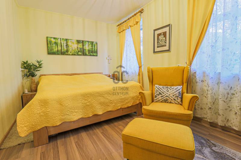 Ha mindig is egy nyugodt, zöldövezeti otthonról álmodott, ahol a madarak csicsergésére ébredhet, mégis karnyújtásnyira van a város minden kényelmétől – itt megtalálja. A szépen karbantartott, kétszintes családi ház egy csendes mellékutcában helyezkedik el, rendezett környezetben.Az alsó szinten világos, tágas nappali-étkezős konyha, egy hálószoba, kamra, valamint fürdő és külön wc található.A felső szinten két további szoba, egy gardrób és egy második fürdőszoba kapott helyet – ideális elrendezés családok számára.A nappali központi eleme a hangulatos kandalló, amely nemcsak meleget, hanem igazi otthonérzést is áraszt a téli estéken.A Vaillant gázkazán a fűtésről, a műanyag nyílászárók és a szigetelt homlokzat és födém pedig az energiahatékonyságról gondoskodnak.A ház színvilága és belső kialakítása harmóniát sugároz – a természetes anyagok, a fa melege és a finom részletek egy igazán barátságos légkört teremtenek. A fedett terasz a ház igazi ékköve: itt kávézhat reggel a szőlőlugas árnyékában, vagy pihenhet este egy pohár borral a kézben.Az udvaron helyet kapott egy fatároló, egy fedett gépkocsibeálló, valamint egy nyitott parkoló elektromos kapuval.A környéken minden megtalálható, amire a mindennapokban szüksége lehet – iskola, óvoda, bolt, gyógyszertár, buszmegálló néhány perc sétával elérhető.Békesség, melegség és harmónia Sopron egyik legszebb részén.Szeretettel várom hívását!Hitelre van szüksége?Az Otthon Centrum az ország egyik legnagyobb és legmegbízhatóbb hitelközvetítőjeként, teljes körű és díjmentes hitelügyintézéssel, biztosításkötéssel áll rendelkezésére!Kérje személyre szabott ajánlatunkat Kollégáinktól!