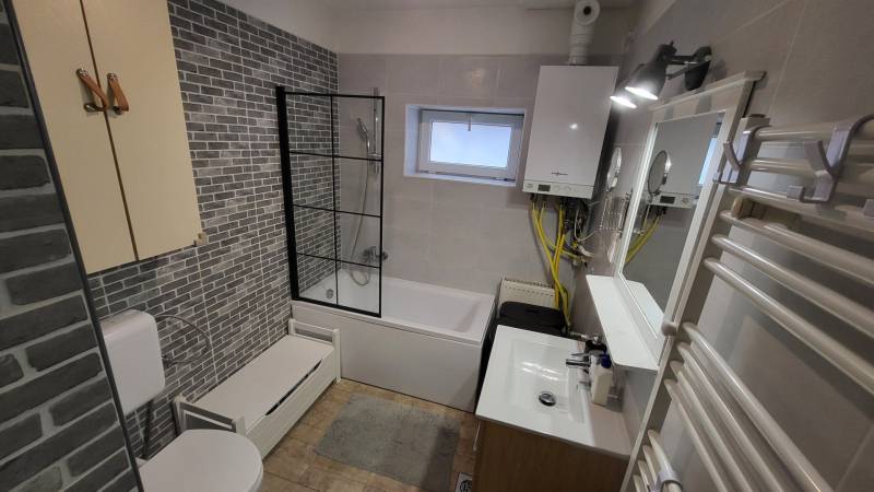 Debrecen kedvelt belvárosi részén eladó egy kitűnő állapotú és elrendezésű, 90 m²-es, napfényes házrész önálló terasz kapcsolattal. -beton alapon 50 cm-es tégla falazat +10 cm-es hőszigetelés,-új tetőszerkezet betoncserép héjazattal-felújított elektromos hálózat-műanyag nyílászárók, redőny, klíma-fűtése: kondenzációs kazánnal-90 m² alapterület + 11 m² terasz-76 m² saját pince (több helyiség kialakítással, sportolásra, borospincének, stb)-160 m² elkerített, saját parkosított kert öntözőrendszerrel, 240x90-es süllyesztett medencével-20 m²-es faszerkezetes garázs-filagória sütőhellyelTökéletes infrastruktúra, belvárosi lokáció, minden a közelben. Csendes környék, kellemes otthon.