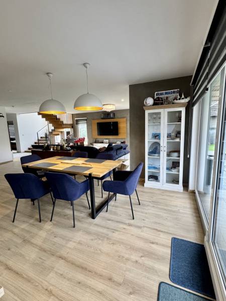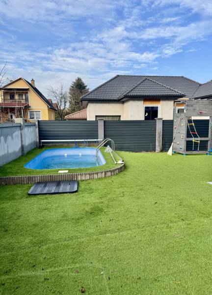 Szeretne egy modern, biztonságos és energiatakarékos otthont? Dunakeszi csendes, ám jól megközelíthető részén kínáljuk eladásra ezt a különleges könnyűszerkezetes családi házat, amely a legmodernebb technológiákat és maximális kényelmet kínálja!Az ingatlan főbb jellemzői:Könnyűszerkezetes acél építési technológia:o 20 cm belső és 10 cm külső szigetelés habbal kiegészítve, horganyzott acélmerevítéssel.o Tűzálló, földrengésbiztos, rovartaszító kivitel.Teljes alapterület: 240 nm, két szinten:o Alsó szint: 150 nm.o Felső szint: 90 nm + körbefutó terasz.Telek mérete: 500 nm.Belső elosztás és kényelmi funkciók:Alsó szint:o Tágas amerikai konyhás nappali étkezővel, világos terek és közvetlen kertkapcsolat.o Vendégszobao Modern fürdőszobao 36 nm-es, fűtött garázs 2 autó számára.Felső szint:o 2 különálló hálószoba, mindegyikhez saját fürdőszoba tartozik.o Gardróbszoba, amely könnyen átalakítható egy harmadik hálószobává.o Körben panorámás terasz, amely különleges szabadtéri élményt nyújt.Prémium műszaki megoldások és extra felszereltség: Minden szobában klíma, mely biztosítja a nyári komfortot. Fűthető medence a kikapcsolódásért minden évszakban. Teljesen elektromos fűtés, napelem kiépítéséhez szükséges engedély már rendelkezésre áll. Minden nyílászáró sávrolóval felszerelt, az otthon biztonságáról pedig riasztórendszer, illetve kamerarendszer gondoskodik. Teljes berendezéssel együtt eladó, ízlésesen berendezett, azonnal költözhető állapotban.Kivételes lokáció:Dunakeszi nyugodt környékén, a városközponthoz közel, de mégis csendes, zöldövezeti elhelyezkedéssel. Közel a szolgáltatásokhoz, iskolákhoz, óvodákhoz, és a főváros is könnyen elérhető.