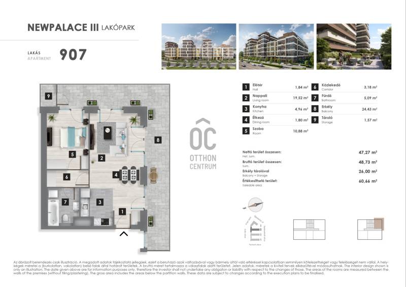 Projekt bemutatásaNew Palace III. ütemA lakópark a XIII. kerület kertvárosias részén épül, a Duna Pláza vonzáskörzetében, 10 perc sétára a 3-as Metró Gyöngyösi utcai megállójától.A földszint + 13 emelet magas épületet elegáns, kertépítők által tervezet parkok veszik körül. A zárt, csak a társasház lakói által megközelíthető udvaron fákkal, cserjékkel tarkított, füvesített zöldkert kerül kialakításra.A lakáskínálat az egy szobás garzonlakásoktól a nappali + négy hálószobás lakásokig terjed, amelyek fűtés és melegvíz ellátása a jövő elvárásait is figyelembe véve környezetbarát, hőszivattyús mennyezeti hűtő, -fűtő rendszerrel megoldott.Vevőink bőséges kollekcióból választhatnak meleg- és hideg burkolatokat, illetve a beltéri látszó igényeket. A jelen adatok tájékoztató jellegűek, ezért a Beruházó (sem a hirdető) azok változásával, vagy bármely attól való eltéréssel kapcsolatban semmilyen kötelezettséget, vagy felelősséget nem vállal.Az alaprajzokon ábrázolt berendezési tárgyak és bútorok, a burkolatok megjelenése nem képezi a szerződés tárgyát. A pontos felszereltségről a műszaki leírásban olvashat bővebben.Az aktuális lakáskínálatról és árakról érdeklődjön telefonon!