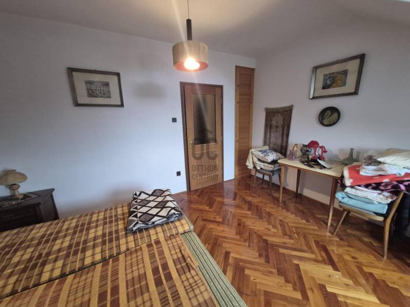 Veszprém belvárosához közel, de mégis csendes, zöldövezeti részen vált eladóvá ez az 1990-es évek elején épült tégla családi ház, mely 3 szinten mintegy 300 négyzetméter hasznos alapterülettel rendelkezik.A ház - elhelyezkedését tekintve - átmenő forgalomtól mentes helyen, egy zsákutca végén található, körbekerített, parkosított telken. A második és harmadik emeletéről is szép rálátást kapunk a veszprémi Várra és várnegyedre, mely egyedi panorámát kölcsönöz a nappalinak és a szobáknak is.Az ingatlan összközműves, riasztóval védett. Belső kialakítását tekintve egy többgyermekes családnak, de akár többgenerációs otthonnak is tökéletes választás lehet! A ház szintenkénti elosztása:- Földszint: előszoba, fogadótér - lépcsőház, szoba, közlekedő, fürdőszoba, mosókonyha/ gépészet, kamra, tároló, garázs, - 1. szint: közlekedő, hálószoba, nappali + terasz, wc, fürdőszoba, kamra, dolgozó szoba, konyha+ étkező közvetlen udvarkapcsolattal- 2.szint: 3 hálószoba, teakonyha, közlekedő, fürdőszoba, wc, tárolóA ház fűtését gázkazán látja el radiátoros hőleadókkal, nyílászárói fából készültek.Amennyiben kérdése merülne fel az ingatlannal kapcsolatban vagy szeretné megtekinteni, kérem keressen megadott elérhetőségeim egyikén!