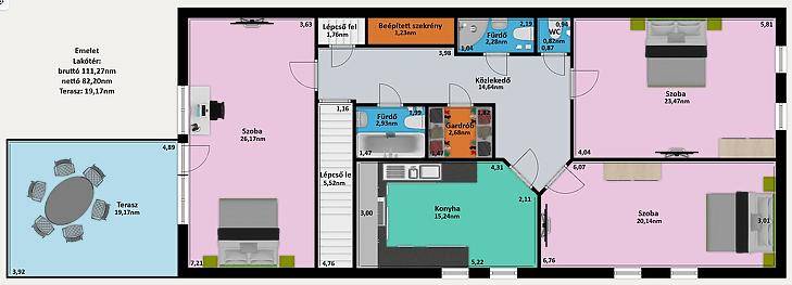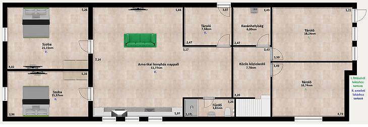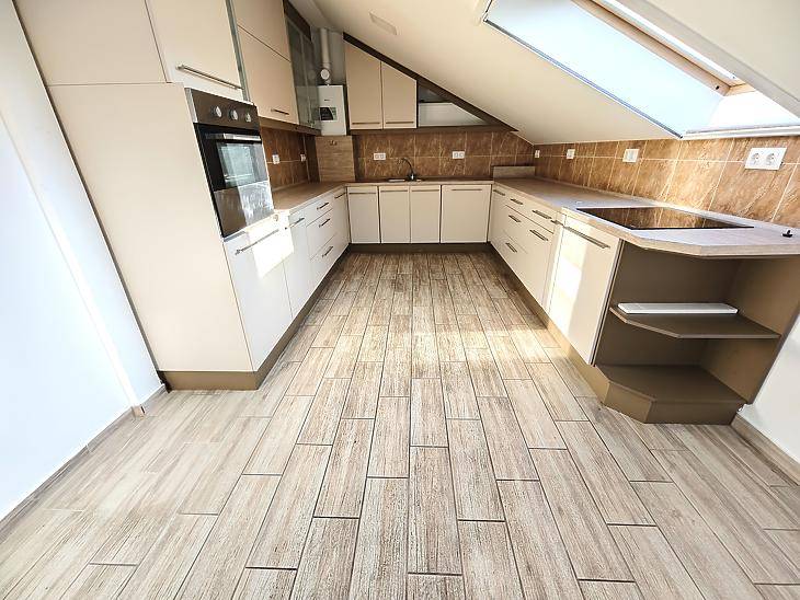 Lipótmezőn 2015-ben épült 2 lakásos házban eladásra kínálunk egy bruttó 206nm-es (nettó 127nm) lakást. Az ingatlan 2 lakrészből áll:- Tetőtérben bruttó 106nm-es (nettó 77nm) 3 szobás, étkezőkonyhás lakás, melyhez tartozik egy 19nm-es terasz kilátással az Apáthy-sziklára- Félszuterénben 100nm-es ablakos, nappali, 2 hálós lakás. Az ingatlan minden ablaka hőszigetelt, a homlokzatra 10cm szigetelés került. Fűtése gázcirkó padlófűtéssel. A hűtésről pedig helyiségenként split klíma gondoskodik. A zárt udvarban kettő autó számára térkövezett autóbeállási lehetőség biztosított automata kapun keresztül.