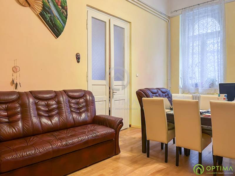TÁGAS POLGÁRI LAKÁS A II. JÁNOS PÁL PÁPA TÉR MELLETTKözvetlenül a II. János Pál pápa tér szomszédságában egy 94 m²-es, nagypolgári stílusú, földszinti lakás várja új tulajdonosát. A klasszikus belmagasság és a tágas terek eleganciája modern lehetőségekkel párosul.A lakás kiváló adottságokkal rendelkezik: 4,35 méteres belmagasságának köszönhetően több galéria is kialakításra került, amelyek praktikus tárolási funkciót látnak el. A lakás elosztása ideális: tágas előszoba, két nagy méretű, világos szoba, külön konyha, fürdőszoba, WC, tároló és egy hálófülke szolgálja a kényelmet. A tér átrendezésével akár több önálló lakás kialakítására is van lehetőség.Az ELEKTROMOS HÁLÓZAT CSERÉJE és az ÚJ CIRKÓ KAZÁN beszerelése már megtörtént, így a műszaki alapok rendben vannak, a belső terek pedig szabadon formálhatók.A környék folyamatosan fejlődő, karakteres városi rész, amelyet zöld parkok, új kávézók és megújuló környezet jellemez – ideális választás saját otthon vagy befektetés céljára is.A KÖZLEKEDÉS kiváló, M4 metró, villamos- és buszjáratok néhány perc sétával elérhetők. Az utcában a PARKOLÁS KÖZTERÜLETEN LEHETSÉGES, és jellemzően könnyen található szabad hely.Az ingatlan TEHERMENTES, 1/1 TULAJDON, így gyorsan birtokba vehető.Irodának, rendelőnek, befektetésnek vagy egy tágas családi otthonnak is remek választás.A megtekintés telefonos egyeztetését este és hétvégén is szívesen intézem.