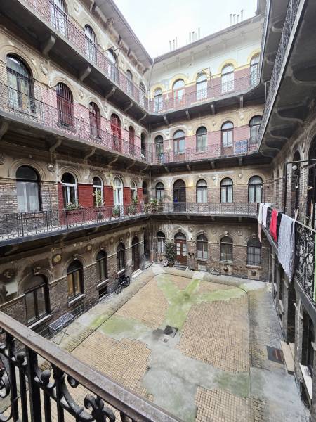 Eladó különleges, belső kétszintes lakás a Palotanegyed szívében!Budapest 8. kerület, Somogyi Béla utcában eladó egy 43 nm alapterületű, belső kétszintes, 75 nm összterületű lakás egy klasszikus, körfolyosós polgári ház első emeletén.A lakás eredetileg 5 méteres belmagasságának köszönhetően egy praktikus galériaszint került kialakításra, ahol 220 cm-es belmagasság biztosítja a kényelmes mindennapokat.Az alsó és felső szint jól kihasználható tereket kínál, így ideális lehet saját otthonnak vagy befektetésnek egyaránt. A fürdő és a WC egy helyiségben található.Központi, mégis csendes elhelyezkedése miatt tökéletes választás azoknak, akik a belváros nyüzsgését szeretnék élvezni gyalogtávolságra a Blaha Lujza tértől, metró- és villamosmegállóktól, egyetemektől és éttermektől.Főbb jellemzők:Kétszintes lakás, összesen 75 nm használható terület5 méteres belmagasság, galériaszint 220 cm belmagassággalElső emelet, körfolyosós, polgári házFrekventált elhelyezkedés, kiváló közlekedésAlacsony rezsi, jó beosztás, világos terekIdeális választás befektetőknek, fiatal pároknak vagy első lakásnak!
