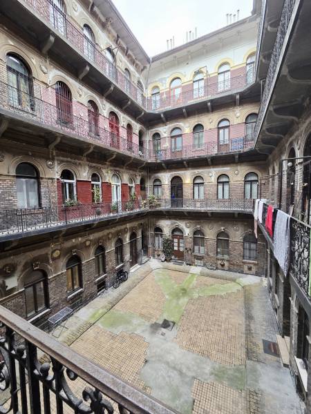 Eladó különleges, belső kétszintes lakás a Palotanegyed szívében!Budapest 8. kerület, Somogyi Béla utcában eladó egy 68 nm hasznos alapterületű, belső kétszintes lakás egy klasszikus, körfolyosós polgári ház első emeletén.A lakás eredetileg 5 méteres belmagasságának köszönhetően egy praktikus galériaszint került kialakításra, ahol 220 cm-es belmagasság biztosítja a kényelmes mindennapokat.Az alsó és felső szint jól kihasználható tereket kínál, így ideális lehet saját otthonnak vagy befektetésnek egyaránt. A fürdő és a WC egy helyiségben található.Központi, mégis csendes elhelyezkedése miatt tökéletes választás azoknak, akik a belváros nyüzsgését szeretnék élvezni gyalogtávolságra a Blaha Lujza tértől, metró- és villamosmegállóktól, egyetemektől és éttermektől.Főbb jellemzők:Kétszintes lakás, összesen 75 nm használható terület5 méteres belmagasság, galériaszint 220 cm belmagassággalElső emelet, körfolyosós, polgári házFrekventált elhelyezkedés, kiváló közlekedésAlacsony rezsi, jó beosztás, világos terekIdeális választás befektetőknek, fiatal pároknak vagy első lakásnak!