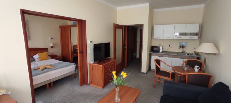 A Karos Spa wellness szálloda apartmanházában 2. emeleti igényes üdülőegység keresi új tulajdonosát.A keleti fekvésű ingatlan ablakai és terasza a szálloda központi parkjára néz. Az épület akadálymentesített, liftekkel felszerelt.A közös költség tartalmazza az ingatlan fűtés-hűtésének, közös részek takarításának, internetszolgáltatásnak a díját.A szálloda fő épülete, wellness részlege föld alatti folyosón közelíthető meg.A lakók a szálloda összes szolgáltatását kedvezményes áron vehetik igénybe.A tágas nappali kényelmes pihenést biztosít. A nagyméretű hálószobában franciaágy és beépített szekrény található.A fürdőszobában termálvizes kád és külön zuhanyfülke is található. A különálló mellékhelyiségben bidé is van. A beépített konyha kisebb étkezések előkészítését teszi lehetővé.Az ingatlan tehermentes, rövid határidővel birtokba vehető, akár saját részre, akár kiadásra is tökéletesen alkalmas.A zalakarosi gyógy és élményfürdő minden évszakban nagyszerű szórakozást, pihenést nyújt kicsiknek és nagyoknak egyaránt.Zalakaros ideális hely a környék felfedezésére, Keszthely, Hévíz, a Balaton 30 km-re, Nagykanizsa 16 km-re található.Zalakaroson rengeteg szórakoztató program elérhető a családok, párok részére. Hívjon bizalommal, egyeztetés alapján rugalmasan megtekinthető ez a remek ingatlan.