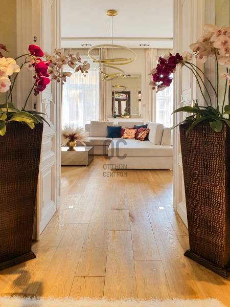 A Világörökség részét képező Belgrád rakparton, a Vásárcsarnok, a Szabadság híd és a Váci utca közvetlen közelében eladó egy 100 m²-es, 3 szobás, belsőépítészek által tervezett, luxusminőségben felújított, bútorozott nagypolgári lakás. A lakás liftes, szép társasház 3. emeletén található, ahol a napfényes terek, kelet–nyugati tájolás és a tágas, 3,8 m-es belmagasság igazán különleges életteret biztosítanak.Főbb jellemzők:Alapterület: 96 m² tulajdoni lapon, ténylegesen kb. 100 m²Elosztás: 2 hálószoba, hatalmas nappali, amerikai konyhás étkező, tároló-mosókonyha, fürdő, WCÁllapot: teljesen felújított, újszerűEmelet: hivatalosan 2., gyakorlatban 3. emeleti Lift: újonnan épített, modern, akadálymentesítettKörfolyosó: széles, nyitott terület a lakás előtt – pihenésre, tele növénnyel. Luxus felszereltség:Belsőépítészeti tervezés, prémium anyagok (Designers Guild textilek, Swarovski világítótestek, egyedi bútorok)Padlófűtés + radiátorok, kondenzációs kazánKlimatizálás: Fisher Art split klímákKonyha: teljesen gépesített Bosch, Siemens és Küppersbusch berendezésekkelHang- és hőszigetelt nyílászárók, extra fal-szigetelés a szomszédok felé70 colos Samsung Smart TV, riasztórendszerAz ingatlan bútorozva, berendezve eladó – minden maradTársasház & környezet:Rendezett, folyamatosan karbantartott házA Havas utca teljes felújításon esett át 2024-ben – új burkolatok, fákkal, utcabútorokkal, kerékpártárolóvalKamerarendszer a házban (10 kamera), csendes lakóközösségParkolás:Saját beállási lehetőség az udvarban (40.000 Ft/hó) – ritkaság a Belgrád rakparton!Ingyenes utcai parkolás lakcímkártyávalBiciklitároló a második udvarbanFenntarthatóság & költségek:Energiatakarékos, „DD” energetikai besorolásKözös költség: 31.000 Ft (víz, szemétdíj, lépcsőházi világítás, felújítási alap is benne van)1/1 tulajdon, per- és tehermentesKözlekedés:2 perc a Fővám tér, 5 perc a Kálvin tér, Ferenciek tere, Gellért tér, Március 15. térVillamos: 2, 2B, 47, 49 | Metró: M3, M4 | Buszok, éjszakai járatok, trolik mind elérhetőkBefektetés szempontjából is kiváló:A lakás sosem volt kiadva – sem rövid-, sem hosszútávraA Belgrád rakpart városfejlesztési projekt alatt áll – új sétányok, zöldterületek, kávézók, vízparti teraszok várhatók a közeljövőbenEz a lakás egyszerre nyújt exkluzív otthont és időtálló befektetési lehetőséget Budapest egyik legpatinásabb környékén.Ár: €559.000Egyedi igényekre szabott lakáshitelekkel állunk rendelkezésére. Bankfüggetlen Hitelcentrumunk az országban elérhető összes bank és hitelintézet ajánlatát versenyezteti az Ön számára díjmentesen.Munkatársaink nagy szakmai tapasztalattal várják Önt az előre egyeztetett időpontban akár a normál munkaidő után is.Bővebb információért és a megtekintéssel kapcsolatban hívjon bizalommal!