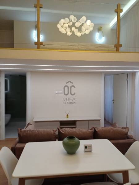 Ebben a lakásban minden részlet azt a benyomást kelti, hogy jó ide megérkezni. Belépve azonnal érezhető a frissesség, a tisztaság és a tudatos, harmonikus térszervezés. Minden bútor, burkolat és beépített megoldás új, egységes stílusban készült, mégis könnyed maradt, mintha eleve ehhez a térhez születtek volna.A nappali és a konyha kapcsolata otthonos és modern egyszerre. A világos színek, a meleg tónusú fa felületek és a rejtett fények olyan atmoszférát teremtenek, amelyben szívesen indul és ér véget a nap. A konyha teljesen gépesített, minőségi beépített berendezései és praktikus elrendezése minden használatot élvezetessé tesznek.A lakás két külön hálózónát kínál. A földszinten egy szeparált, csendes hálórész vár, amely tökéletes a mindennapi pihenéshez. A galérián egy második, hangulatos hálótér kapott helyet, üvegkorláttal, finoman megtervezett fényekkel és tágas ággyal. A felső szint külön világ, ahol a nap ritmusa természetesen lassul le, és könnyű valódi nyugalomba érkezni.A lakás okosotthon funkciói – a telefonról vezérelhető fűtés, klíma és redőnyök – a kényelem következő szintjét hozzák el. A gépészet szintén teljesen megújult, így a lakás nemcsak szép, hanem megbízható is.A társasházban több lakást már kettéosztottak, az alapító okirat módosítása elfogadott, az albetétesítés folyamatban van. A lakás hamarosan önálló tulajdoni lappal rendelkezik.Ez az otthon azoknak készül, akiknek fontos a minőség, az átgondolt tér és az azonnal költözhető, teljesen kész állapot. Akik nem szeretnének felújítással, tervezéssel és bútorok összeválogatásával foglalkozni, hanem készen szeretnék megkapni azt az életérzést, amelyet ez a lakás magától nyújt.
