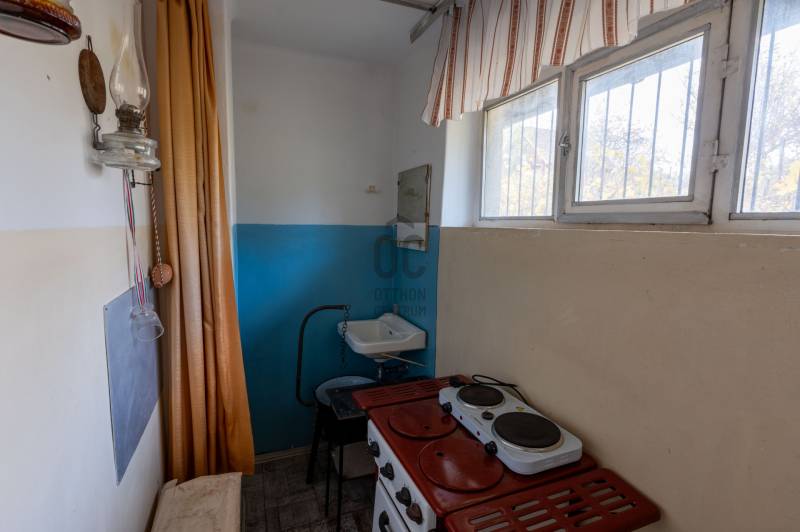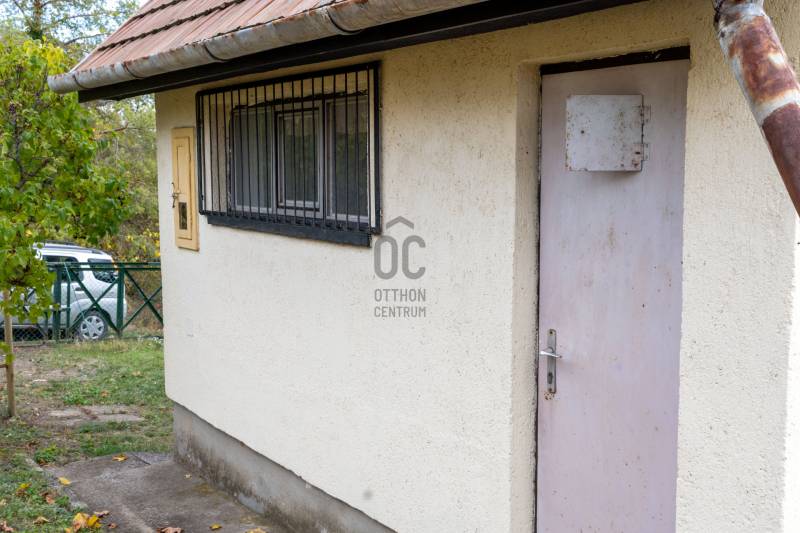 Romantikus nyugalom a varázslatos pázmándi szőlőhegyenRákanyarodunk a szőlőhegyre vivő útra, és megyünk. Eleinte aszfalt, megyünk felfelé, kétoldalt szőlők, kertek, házikók, aztán az út zúzott kövesre vált, közeleg a dombtető, ahol már az erdő az úr, de még előtte jobbra kanyarodunk és megékezünk a nyeles telekként működő kis birtokra. Gondozott kertek, szőlőültetvények, csinos présházak övezik utunkat. Ápoltabb vidék, mint amire számítunk és kicsit mostohább, mint amit a szőlő és bor megérdemel.A 707 nm-es telken 1972-ben épült egy masszív présház és alatta a betonfödémes pince. Azóta minden évben bort érlel ez a pince, de megérett az idő a tulajdonosváltásra.A házikó egy klasszikus egy szoba + konyhás beosztású, masszív szerkezetű, tégla falazatú miniház. A korábbi erkély mára már üvegezett veranda, ahol az étkezőasztal kapott helyet és csodálhatjuk Pázmánd lankáit, a tájat. Fürdőszoba nincs, de kialakítható, a víz fúrt kútról lenne megoldható. Jelenleg csapadékvíz gyűjtésre van lehetőség. A villany be van vezetve. Fűtése jelenleg is megoldott egy kis vaskályhával, épített kéménnyel.A telek egy külön helyrajzi számon bejegyzett úton közelíthető meg, mely tulajdonjogilag a felső szomszéddal közös 50-50% arányban, a telek adásvételével egyidejűleg átadó a vevőnek, ára benne van a vételárban.A sétával bejárható környék a helyiek kirándulóhelye, főbb érdekességei a Pázmándi sziklák kilátópont, Szent Vendel kőszobra, Szent Orbán faszobra, valamint borral kínáló pincék és erdős-sziklás sétautak.Ez a kisház a nomád körülményektől vissza nem riadó természetkedvelők érdeklődésére tarthat számot. Egy kis korszerűsítéssel egész éves lakhatásra is alkalmassá tehető, és kis méreteinek köszönhetően kis rezsiköltségekkel fenntartható.Ez az ingatlan a \"Felező csomag\" megbízási portfólióhoz tartozik. Részletek az Otthon Centrum weboldalán.