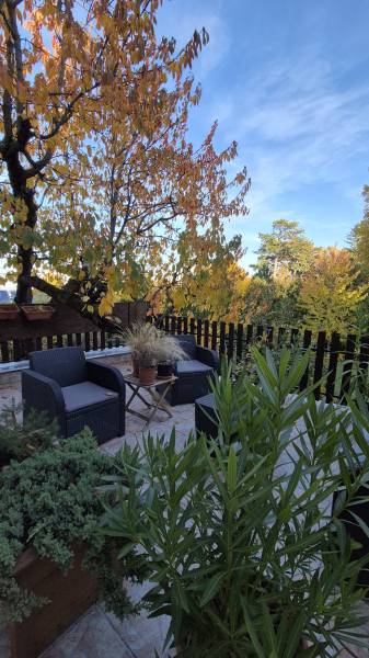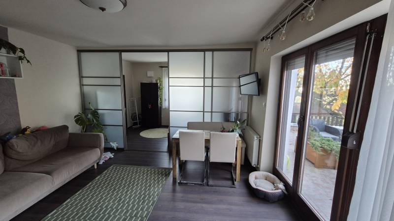 Nagy teraszos lakást keres a Svábhegyen?Most eladóvá vált a csendes Normafa úton egy jó hangulatú, zöldre néző 50m2 alapterületű ingatlan, amelyhez egy fantasztikus 33 m2-es terasz tartozik (a terasz 1/3-ával számolva nettó 61 m2).A lakás felújított, amerikai-konyhás nappali, leválasztott háló, külön kisszoba, fürdő, önálló WC és gardrób alkotja.A terasz a nappaliból nyílik, így szerves része a családi programoknak, kikapcsolódásnak.A lakás a kétszintes ház első emeletén található, önálló bejárattal rendelkezik.A ház és a telek is osztatlan közös tulajdonban van, amelyet ügyvéd által ellenjegyzett használati megállapodás szabályoz.Tulajdonos visszabérelné.Az utcában ingyenes a parkolás, a közelben mindig van szabad hely.