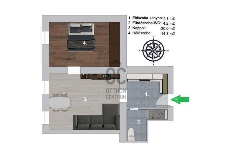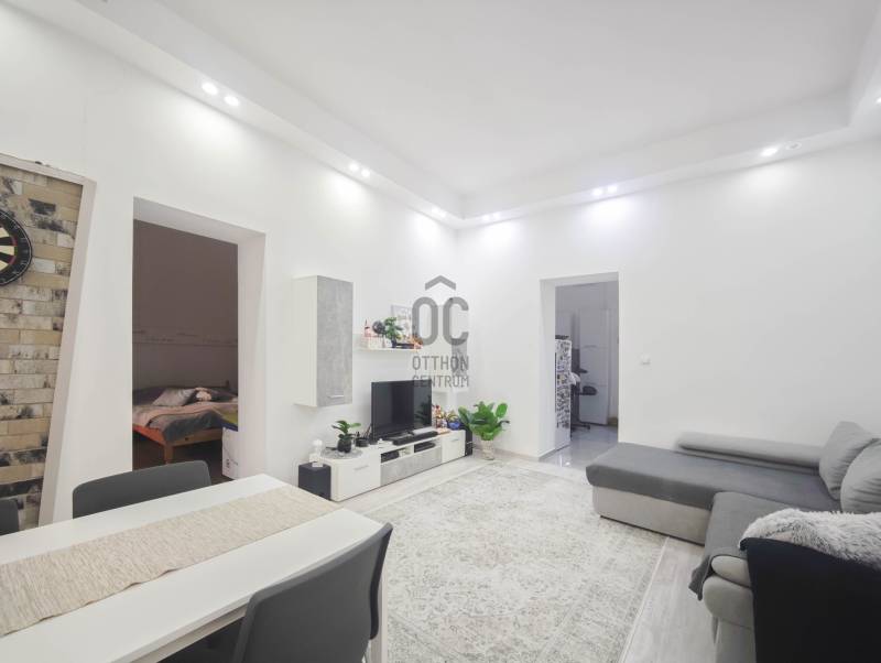 Új tulajdonosát keresi Újpesten egy csendes, felújított, földszinti lakás jó közlekedéssel és infrastruktúrával. Ha szép állapotú, alacsony fenntartási költségű, élhető terekkel rendelkező ingatlant keres, akkor ezt ne hagyja ki!A KÖRNYÉKRŐL:- Budapest IV. kerülete, Újpest, Erkel Gyula utca.- Funkcionálisan jól ellátott környék, fejlődő kerületi központ közelében.- Gyakorlatilag Újpest-Központ vonzáskörzete, gyalog, autóval és tömegközlekedéssel is gyorsan elérhető.- Több buszjárat megállója megtalálható sétatávolságban, a legközelebbi buszmegálló 300 méter.- Újpest-Központ és az M3 metró 7 perc busszal, 13 perc gyalogosan.- 10 perces körön belül elérhető minden, ami a napi élethez szükséges.A HÁZRÓL:- 1960-ban épült, 16 lakásos, földszintes, téglaépület.- Kívül-belül átlagos állapotú.- Rendezett közös belső udvarral rendelkezik.A LAKÁSRÓL:- Földszinti, 48 m2-es, 2 szobás, felújított ingatlan.- Kifejezetten csendes és hangulatos, fiatalos otthon.- Rendkívül praktikus elrendezésű, modern kialakítású, élhető terekkel rendelkezik.- Jelenlegi felosztása: előszoba-konyha, nappali + 1 hálószoba, zuhanyzós fürdőszoba-wc.- A hálószoba a nappaliból nyílik, a szobák az utcára néznek.- A nyílászárók részben műanyagok, részben modern fa szerkezetű ablakok.- A lakásban lévő burkolatok modern színvilágúak és jó minőségűek.- A lakáshoz tartozik egy 6 m2-es saját pincerekesz.AZ INGATLAN MEGTEKINTHETŐ:- személyesen,- online személyes bejelentkezéssel.FINANSZÍROZÁSI KÉRDÉSEKBEN ONLINE ÜGYINTÉZÉSSEL IS SEGÍTÜNK:- Bank-független hitelcenterünk díjmentesen versenyezteti minden bank és hitelintézet ajánlatát.- Önnek nincs más dolga, mint beszélgetni munkatársunkkal, majd a megversenyeztetett ajánlatokból kiválasztani a hosszútávon is a legmegfelelőbb konstrukciót.- Szakértőink 20 éves szakmai tapasztalattal és egyedi igényekre szabott, fogyasztóbarát lakáshitelekkel, babaváró hitellel, teljes körű CSOK PLUSZ és OTTHON START program ügyintézéssel várják Önt.- Előre egyeztetve akár a normál munkaidő után is.Kifejezetten ajánlom pároknak, vagy egyedülállók részére. Könnyű megközelíthetősége és a környék ellátottsága miatt bármely korosztály számára kényelmes otthon lehet.További információért és megtekintési időpontért hívjon bizalommal.
