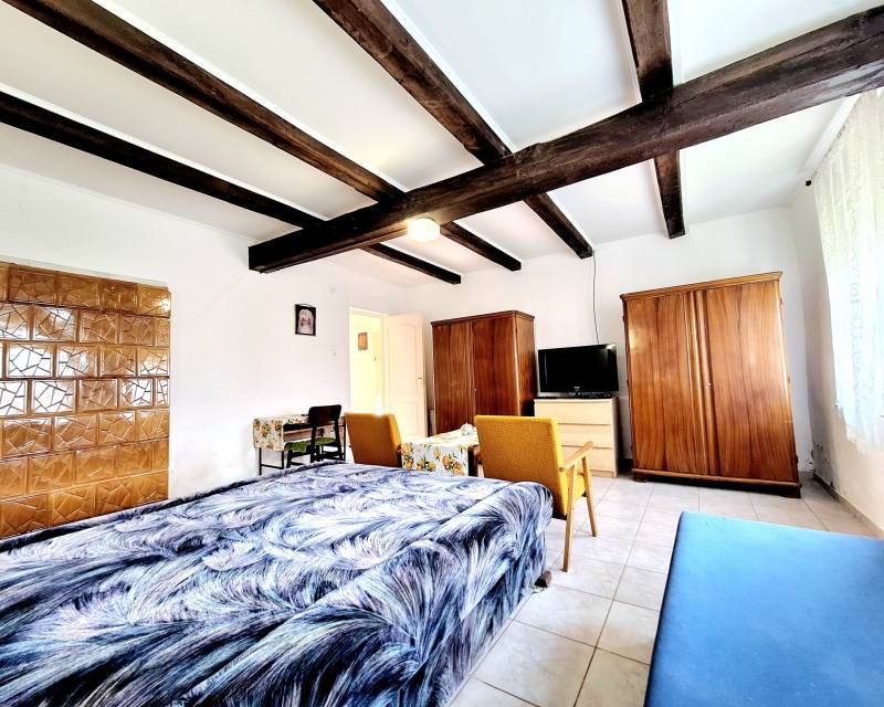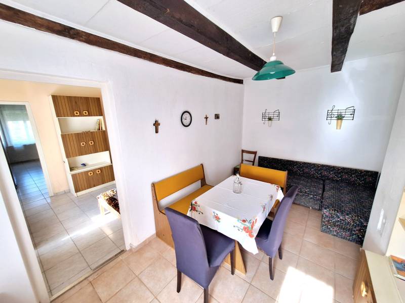 3% OTTHON START ÉS FALUSI CSOK IGÉNYELHETŐSomogy vármegyében, az M7 autópálya közvetlen közelében, Szőkedencs csendes és nyugodt környezetében kínálunk 3 szobás parasztházat eladásra, amely ideális választás lehet minden korosztály számára, akik szeretnék élvezni a vidéki élet nyugalmát és szépségeit.Az épület 3 szobával rendelkezik, kényelmes otthona lehet családoknak, de befektetési célokra is remek lehetőséget kínál. A telek mérete 2158 nm, ami elegendő teret biztosít a szabadidős tevékenységekhez, kertészkedéshez. Az ingatlanban az elmúlt évek során több felújítás történt, a leendő tulajdonos saját ízlése szerint alakíthatja ki a belső tereket. A fűtés gázkonvektorral és cserépkályhával történik, ami kényelmes és gazdaságos megoldás a téli hónapokban. Szőkedencs egy nyugodt, biztonságos település, ahol a közlekedési lehetőségek is kedvezőek. Az autóval való közlekedés egyszerű, a 7-es főút és az M7 autópálya gyors hozzáférést biztosítanak a környező városokhoz, a helyi buszjáratok lehetővé teszik a tömegközlekedést is. az ingatlan főbb jellemzői:- kiváló megközelíthetőség- csendes, természetközeli fekvés- belterület- Ingatlan nyilvántartás szerint: KIVETT LAKÓHÁZ, UDVAR, GAZDASÁGI ÉPÜLET- 76nm alapterület- 1950-es években épült vegyes falazatú, döntő többségben tégla épület- földszintes parasztház látszó gerendákkal- fa nyílászárók- cseréptető- a fűtés 2 gázkonvektorral és cserépkályhával biztosított- meleg víz ellátása villanybojlerrel történik- a fürdőszoba 2010-ben került kialakításra- a konyha kb 3 éve újult meg- kémény 3 éve lett újra rakva- jelen állapotában is egész évben lakható- az épület főképp homlokzati felújítást igényel, leendő tulajdonosa saját ízlése szerint alakíthatja ki - 2.158 nm a telek nagysága- körbe kerített- vezetékes villany, víz, gáz bevezetve, szennyvíz elvezetése zárt emésztőben történik- az udvarban található egykori tégla istálló további bővülésre ad lehetőséget (32nm)- a melléképület tetőzete felújításra került- a kert bőséges teret kínál a szabadidős tevékenységekhez, kertészkedéshez, gyümölcsös kialakításához- a telek hátsó részében akácos található- külön hátsó útról is könnyen megközelíthetőaz épület elosztása:- a lakóházban 3 különálló szoba található ( 2 háló és 1 nappali)- fürdőszoba/ WC- konyha/étkező- nagy méretű kamra, padlásfeljáróvalSzőkedencs egy csendes, barátságos 260 fős kistelepülés, ahol a természet közelsége és a friss levegő garantálja a nyugalmat. A település biztonságos, és az itt élők közössége összetartó. A közlekedés is kedvező, hiszen a közeli városok, mint például Keszthely, Marcali, Nagykanizsa kb 20 percen belül megközelíthetők autóval és tömegközlekedéssel is. Zalakaros gyógyfürdő 15 kilométerre található. A legközelebbi vasútállomás Zalakomárban elérhető. A közeli boltok, orvosi rendelő, könyvár, 2 templom és egyéb szolgáltatások pedig megkönnyítik a mindennapi életet. A Kis-Balaton közelében a falu nevezetessége a temetőben található közel 700 éves hársfa.Ez az ingatlan egy lehetőség arra, hogy egy olyan helyen éljen, ahol a természet közelsége és a csendes életvitel harmóniában találkozik. Ha Ön is szeretne többet megtudni erről az ajánlatról, várjuk hívását!Az adatok és alaprajz tájékoztató jellegű.