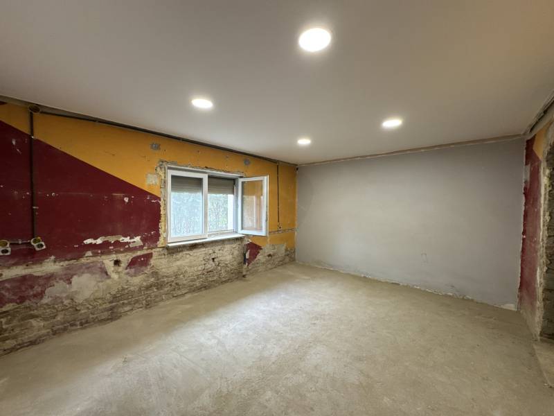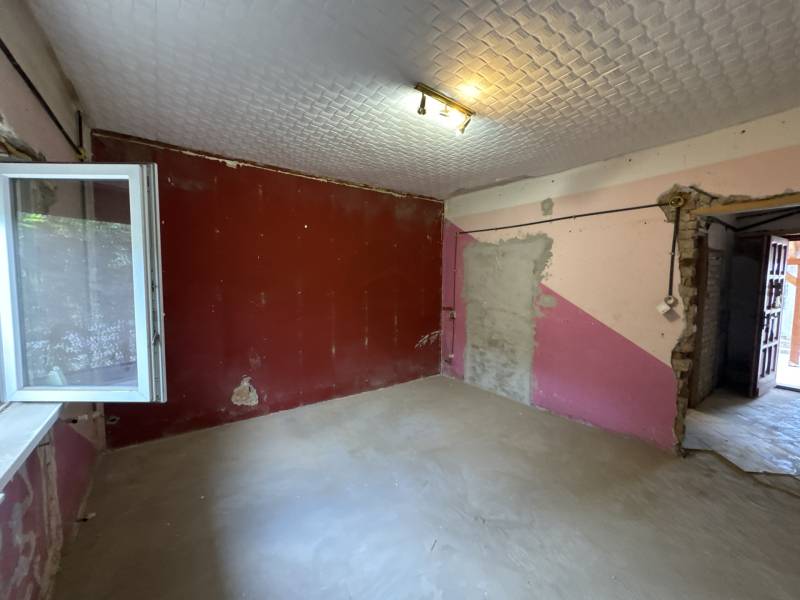 Eladó felújítandó családi ház Erdőkertesen, jó elosztás, garázs, napelem!Alapterület: 76,37 m² + 34 m² fedett teraszTelek: 675 nmSzobák száma: 2 szoba + konyha + fürdő + tárolóÁllapot: Teljesen felújítandóFűtés: egyedi (korábbi radiátorok részben megvannak)Parkolás: 2 állásos garázs elektromos kapuvalExtrák: napelemrendszer, beépített terasz, tágas kertLeírás:Erdőkertes csendes, zöldövezeti részén eladásra kínálunk egy 76,37 m²-es, kisméretű téglából épült családi házat, mely teljes belső felújítást igényel.Az ingatlan 2 szobából, konyhából, fürdőszobából, egy kis tárolóból, valamint egy fedett 34 m²-es teraszból áll. A mellékelt fotók jól mutatják az ingatlan jelenlegi állapotát, ami a kreatív vevők számára átalakítási szabadságot biztosít.A házhoz tartozik egy tágas, kétállásos garázs, mely elektromos kapuval rendelkezik. A garázs falai dekoratív bontott téglával burkoltak, a tetőszerkezet újabb, és a tér világos, rendezhető.A konyha és a szobák jelenleg bontott állapotban vannak – részben vakolatlan falak, új mennyezeti világítás, részben új nyílászárók és burkolat nélküli padló jellemzi őket. A konyhában néhány beépített elem már megtalálható.A hátsó kert gondozásra vár, de kiváló adottságokkal rendelkezik: zöld, napos, több gyümölcsfával és bokorral, valamint egy kis veteményes vagy játszótér is könnyedén kialakítható.További jellemzők:TéglaépítésűNapelemrendszerElektromos garázskapuRészben új nyílászárókFedett teraszCsendes, kertvárosi környezetFelújítóknak, befektetőknek ideálisKiknek ajánljuk?Felújításban gondolkodóknak, akik saját ízlés szerint alakítanák ki otthonukatBefektetőknek, akik értéknövelésben és kiadásban is gondolkodnakCsaládosoknak, akik szeretnének kertes házba költözni elérhető áron