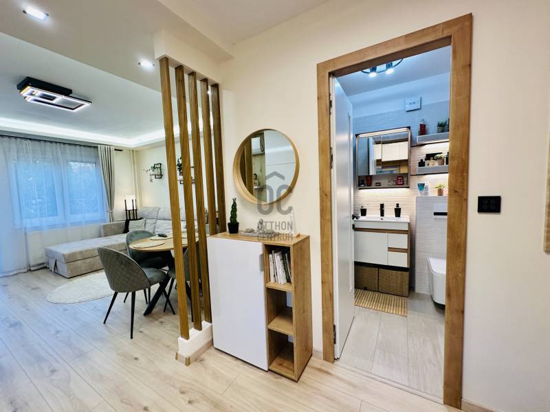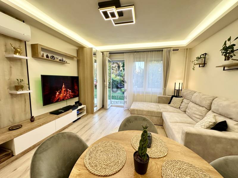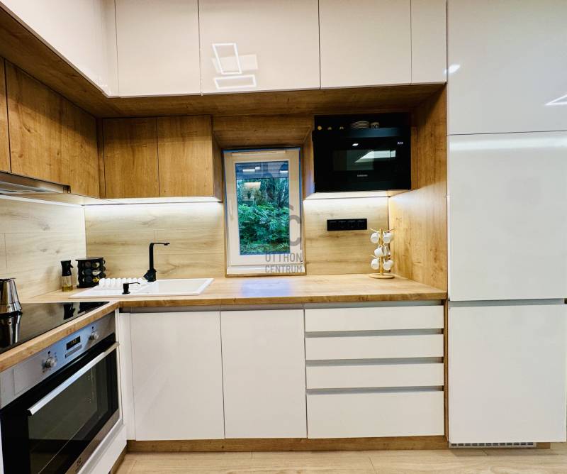 A XI. kerület egyik legkedveltebb részén, a Beregszász úton, a metrótól mindössze 5 perc sétára eladó ez a brutto 31 nm-es, 1 szobás, KERTKAPCSOLATOS, TERASZOS garzon, ahol a kényelmet és a praktikusságot tökéletes harmóniában találod.A meghirdetett ár tartalmazza a saját udvari autóbeállót, a 2 nm-es tárolót, valamint a gondozott közös kert használatát is. Csak beköltözni kell!!!A lakás teljesen berendezve és gépesítve eladó – benne marad a kihúzható kanapéágy, étkezőasztal székekkel, beépített konyhabútor Electrolux gépekkel (indukciós főzőlap, sütő, hűtő, páraelszívó, mosogatógép), szekrények, valamint Midea hűtő-fűtő KLÍMA és ELEKTROMOS REDŐNYÖK is.A 4 nm-es terasz csendes, zöld udvarra néz – igazi nyugalom a város közepén. A kétszintes, 8 lakásos társasház rendezett, barátságos lakóközösséggel, 615 nm-es telken.Fűtés: házközpontiKözös költség: 21.000 Ft/hó (felújítási alap, fűtés, szemét, kertész)Rezsi: kb. 10.000 Ft/hóKiváló elhelyezkedés: Lidl 1 perc, M4 metró és több buszjárat 5 perc, a közelben orvosi rendelő, jóga stúdió, iskola és óvoda.Ideális választás befektetésnek, első lakásnak vagy bárkinek, aki modern, igényes és azonnal költözhető otthont keres Kelenföld egyik legjobb részén.Egyedi igényekre szabott lakáshitelekkel állunk rendelkezésére.Bankfüggetlen Hitelcentrumunk az országban elérhető összes bank és hitelintézet ajánlatát versenyezteti az Ön számára díjmentesen.Munkatársaink nagy szakmai tapasztalattal, teljes körű CSOK PLUSZ és OTTHON START PROGRAM ügyintézéssel várják Önt előre egyeztetett időpontban akár a normál munkaidő után is.