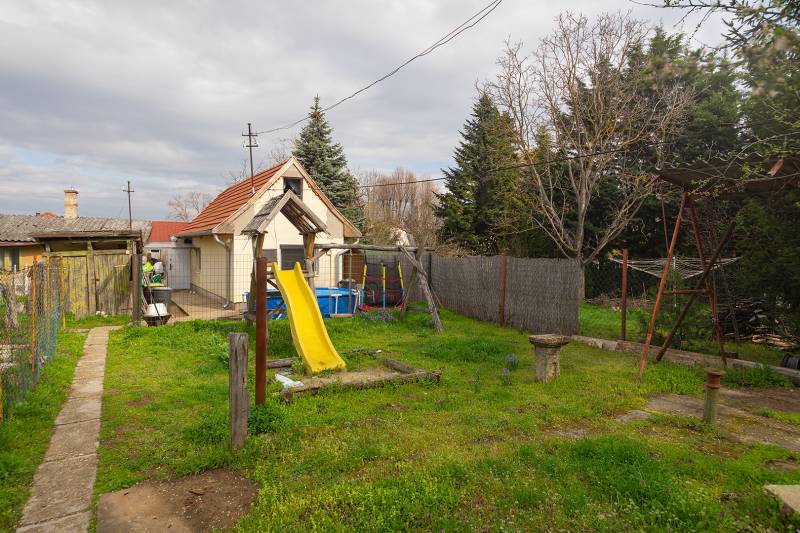 XVII. kerületben Rákoscsabán csendes mellékutcában kínálunk megvásárlásra egy földszinti, 88 nm-es lakást (jelenleg egy 40 nm-es és egy 48 nm-es külön bejáratú lakásból áll, de a két lakás könnyedén egybe nyitható) elkerített saját, összesen 290 nm-es kerttel, tárolóval. A telken egy kétszintes lakóépületben 3 lakás lett kialakítva, két földszinti és egy emeleti lakás. A kert végében még egy különálló kisebb lakóház áll, ez a negyedik lakás a telken. A hirdetés tárgya a két földszinti, összesen 88 nm-es lakás, melyek jelenleg külön bejáratokkal rendelkeznek, de akár egybe is nyithatók, és egy tágas, világos nagy lakás alakítható ki az egybenyitással. A két lakás kizárólag egyben eladó. A teljes lakóépület földszinti homlokzata dryvit hőszigetelést kapott, a teljes földszint feletti tető rész is felújításra került az ereszcsatornával együtt. A nagyobbik, 48 nm-es eladó lakásban a nyílászárók egy része cserélve lett műanyagra, itt az elektromos hálózat is megújult. A fűtést itt gázkazán biztosítja. A kisebbik szobák alatt mindkét lakásban egy-egy pince is kialakításra került. A kisebbik, 40 nm-es lakásban az elektromos hálózat új, ide a csatorna és a gáz nincs bevezetve, a másik lakásból beköthető. Ebben a lakásban jelenleg fürdőszoba és konyha nincs kialakítva, fűteni kályhával lehet. Ennek a lakásnak van egy fedett terasza, mely beépíthető. A környék rendezett, csendes, buszmegálló pár perc séta. A lakóközösség csendes, kulturált.