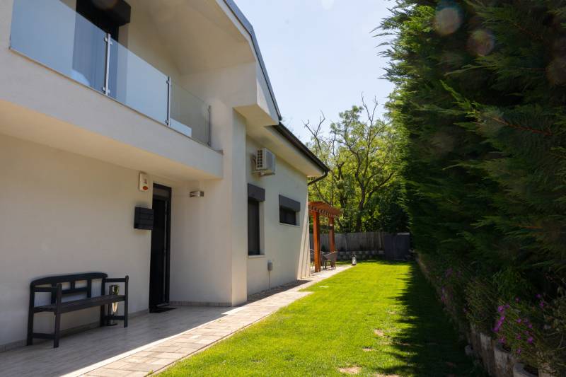 RITKA! Ha olyan otthont keresel, ahol a kertkapcsolat természetes, a szomszéd mosolyog, és a gyerekek szabadon bicikliznek az utcában – akkor megtaláltad.A Sissy Villa Park nem csak egy lakópark – egy életérzés. Amerikai hangulat Mogyoródon: kerítés nélküli házak, rendezett előkertek, közösségi programok, családias légkör. Itt a lakók ismerik egymást, figyelnek a másikra, mégis megmarad a privát tér.A kínált ingatlan egy 2020-ban épült ikerházfél, de külön helyrajzi számon, jogi és funkcionális értelemben is önálló családi ház. Főbb jellemzők: • Nappali + 3 hálószoba • 2 teljes értékű fürdőszoba • Modern gázcirkós fűtés • Praktikus alaprajz • Intim kertkapcsolat • Kellemes terasz Az ikerfelek csupán egy rövid falszakaszon érintkeznek, a kivitelezés pedig gondoskodik a zajmentes, nyugodt életről. Az építéskori teljes tervdokumentáció rendelkezésre áll. A megközelítés Budapestről kb 15-20p autóval. Ha egy barátságos, mégis elegáns környezetre vágysz, ahol a nyugalom és a közösség kéz a kézben jár – akkor ez az otthon neked szól.