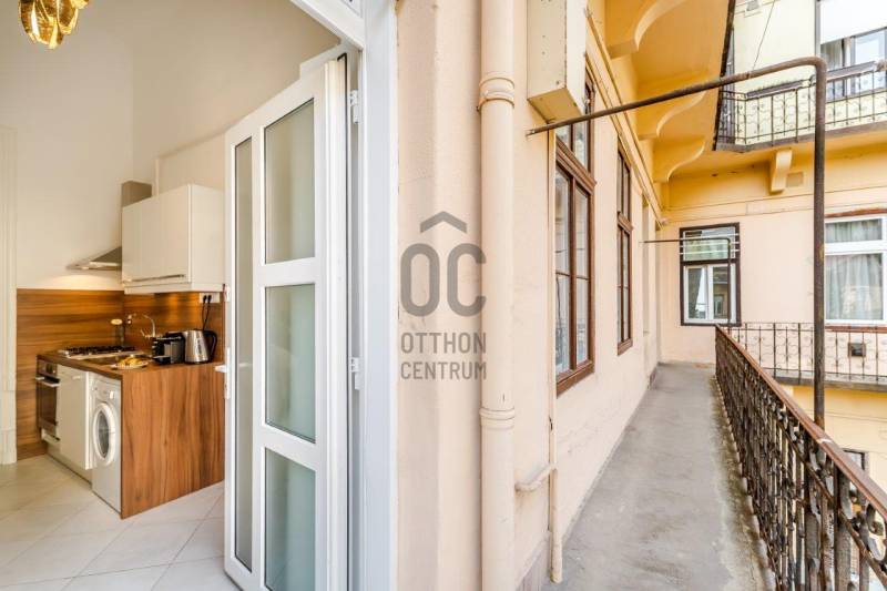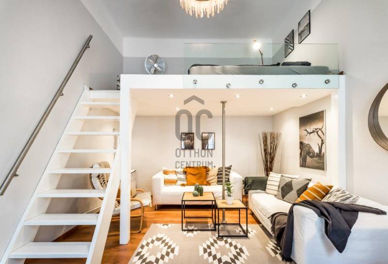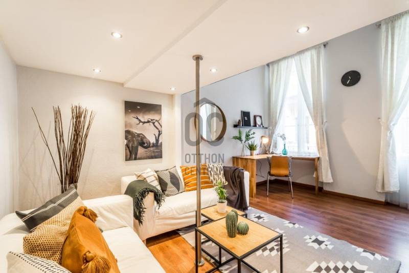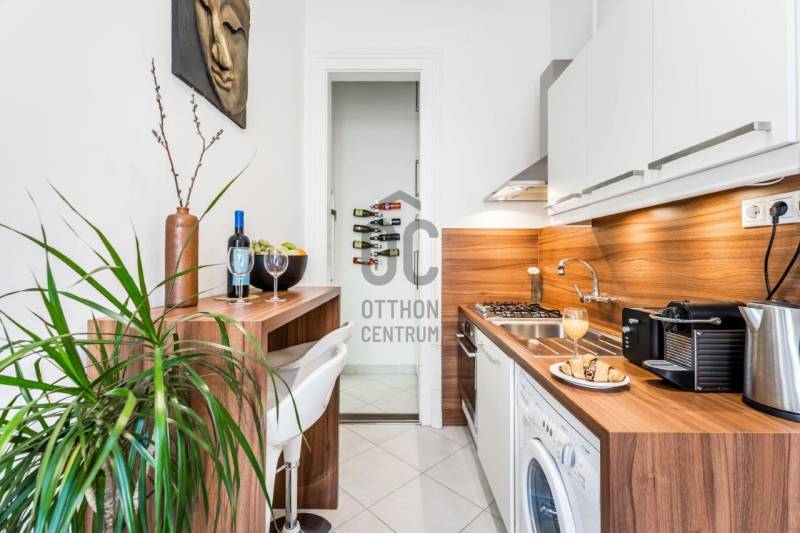 Eladó egy kivételes adottságú, 38 m²-es (galériákkal együtt 48 m²-es), azonnal használható, teljesen berendezett 1. emeleti lakás, amely hosszú éveken át Vendégfavoritként szerepelt az Airbnb-n. A lakás a praktikus, átgondolt kialakítás mellett a kiemelkedő lokáció miatt is keresett: néhány perc sétára található az Oktogon, az 1-es metró és a 4/6-os villamos.A lakás két különnyíló, világos szobával, mindkettőben állógalériával (195 cm), valamint 4 méteres belmagassággal rendelkezik, ami tágas, levegős életteret biztosít. A szobák ablakai csendes, belső udvarra néznek.Helyiségek és felszereltség:Nappali:-kanapé, fotel-dohányzóasztal-íróasztal-galéria: 160×200 cm-es franciaágyHálószoba: -nagyméretű, tükrös beépített gardróbszekrény-galéria: 140×200 cm-es franciaágyKonyha–előszoba:-teljesen felszerelt konyha (edények, evőeszközök, poharak stb.)-gáz főzőlap, sütő, mikró-beépített hűtő fagyasztórekesszel-modern, design konyhabútor-étkező bárasztal 2 székkel-Daikin 3,5 kW-os klímaberendezés-több beépített szekrény és tárolóhelyFürdőszoba:-elegáns, üvegfalas walk-in zuhany-WC, mosdó-praktikus tárolószekrény-elektromos törölközőszárító radiátor-elektromos bojlerMűszaki és kényelmi extrák:-felújított gázkonvektoros fűtés + klímás rásegítés-rezsivédett kategória-4 m²-es emeleti saját tároló-külön zárható pincehelyiség-felújított kapubejáró és gondozott lépcsőházEgyedi igényekre szabott lakáshitelekkel állunk rendelkezésére.Bankfüggetlen Hitelcentrumunk az országban elérhető összes bank és hitelintézet ajánlatát versenyezteti az Ön számára díjmentesen.Munkatársaink nagy szakmai tapasztalattal, teljes körű CSOK PLUSZ és OTTHON START PROGRAM ügyintézéssel várják Önt előre egyeztetett időpontban akár a normál munkaidő után is.