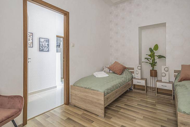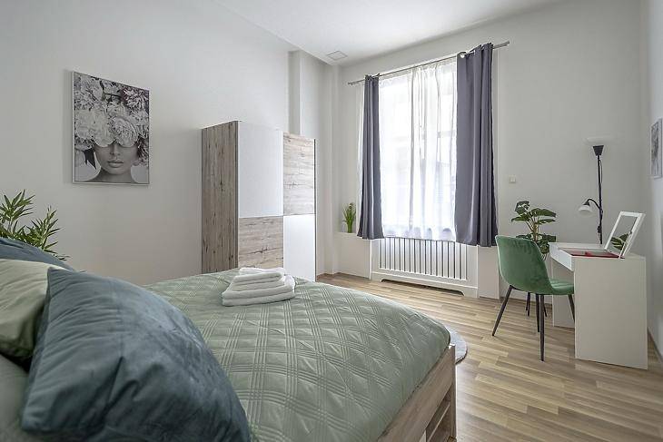Kiadó egy világos, kényelmes, két külön nyíló szobával és egy tágas nappalival rendelkező, bútorozott és teljesen gépesített lakás a Jókai tér 6. szám alatt. A lakás egy rendezett, csendes társasházban található. A Jókai tér környéke élénk, frekventált és rendkívül kedvelt, néhány perc sétára van az Andrássy úttól és a Nyugati pályaudvartól, a közelben pedig számos étterem, kávézó, üzlet és szolgáltatás elérhető. A közlekedés kiváló: a Nyugati metrómegálló, a 4-6-os villamos, valamint több buszjárat is rövid sétatávolságra elérhető, így a belváros bármely része gyorsan megközelíthető. A lakás előzetes egyeztetéssel tekinthető meg, bérléséhez két havi kaució és egy havi bérleti díj szükséges, valamint a közjegyzői okirat költségének felét a bérlő fizeti. A lakás január 5-től költözhető.