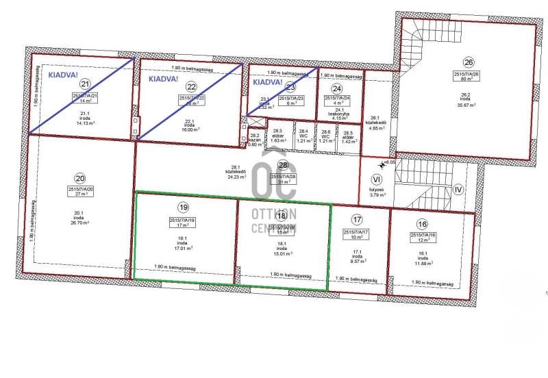Szekszárd szívében, a Tinódi utcában, frekventált helyen kiadók újszerű állapotú, klimatizált irodák egy korszerű, tégla építésű irodaház második emeletén.Az ingatlan kiváló választás vállalkozások, könyvelők, tanácsadók vagy szolgáltatók számára, akik igényes, belvárosi környezetben keresnek munkahelyet.Főbb jellemzők:- Belvárosi elhelyezkedés, könnyű megközelíthetőség- Korszerű épület, tégla falazat, redőnnyel védett műanyag nyílászárók- Saját gázkazános fűtés, klimatizált (hűtő-fűtő) helyiségek- Modern burkolatok: irodákban laminált parketta, közösségi terekben járólap- Fehérre festett falak, újszerű, tiszta állapot- Közös használatú teakonyha és mosdók a folyosón- Irodák egyenként vagy több helyiség összekapcsolásával is bérelhetők (12, 27, 32, 80 m2)- A hirdetésben található iroda 32 m2 alapterületű, a szintrajzon a 18, 19. számú együtt.- Hosszú távú bérleti lehetőség, minimum 1 évTovábbi információk:- Parkolás a ház előtt, fizetős övezetben- Zárt lépcsőház, kaputelefonos beléptető rendszer- A meghirdetett nettó összeg és nem tartalmazza a rezsit és a közös költséget- Az irodákat bútorozottan, vagy anélkül is bérelhetiIdeális választás mindazoknak, akik egy rendezett, reprezentatív irodai környezetet keresnek Szekszárd belvárosában!