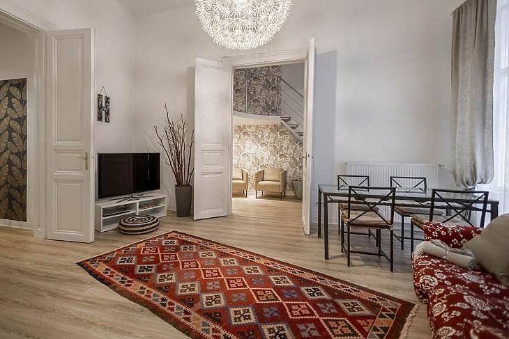 Hosszútávra kiadó egy gyönyörűen felújított, stílusos, nagy belmagasságú lakás a belváros egyik legkedveltebb részén, a Nagymező utca 41. szám alatt. A lakás modern kényelmet és egyedi, otthonos hangulatot kínál: igényes burkolatok, dekoratív tapéták, látványos lámpák és minőségi bútorok teszik különlegessé.A tágas nappali étkezővel és nagy ablakokkal vár, amelyhez egy hangulatos galériás háló, valamint egy különálló, teljes értékű hálószoba kapcsolódik. A teljesen felszerelt konyhában sütő, főzőlap, mosogatógép, nagy hűtő, mikrohullámú sütő és mosógép is rendelkezésre áll. Két modern, zuhanyzós fürdőszoba biztosít kényelmet több fő számára is. A lakás légkondicionált, és január 5-től költözhető.A Nagymező utca kiváló elhelyezkedésének köszönhetően minden könnyen elérhető. A környéken számtalan étterem, kávézó, bolt, színház és kulturális helyszín található. A közlekedés kimagaslóan jó: néhány perc sétára van az M1-es metró, több villamos (4-6, 47-49), valamint számos buszjárat, így a város bármely pontja gyorsan megközelíthető. A Nyugati pályaudvar és az Oktogon is percek alatt elérhető gyalog.A lakás ideális választás pároknak, dolgozó fiataloknak, aki szeretne hosszútávon egy igényes, hangulatos, teljesen berendezett otthonban élni Budapest szívében.