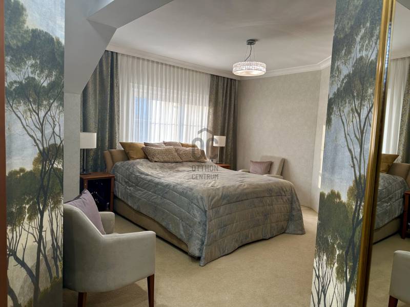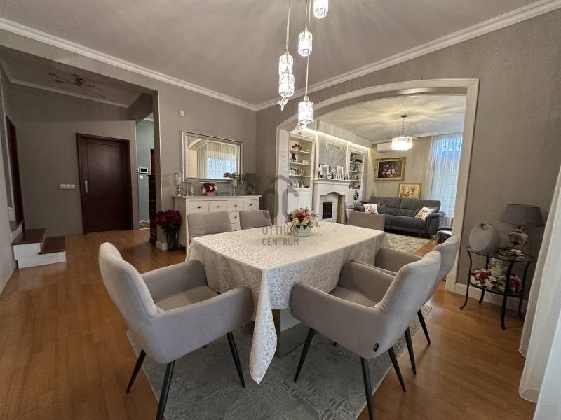 Exkluzív, igényesen megépített ikerházi otthon eladó – csendes környezetben, mégis Budapest közvetlen közelében.Eladásra kínálunk egy kivételes minőségben megépített ikerházi ingatlant, amelyet a tulajdonos saját célra építette, így minden részletében a gondosság, a tartósság és a prémium műszaki tartalom tükröződik.Az ingatlan csendes, rendezett környéken található, mindössze 3 perc autóútra Budapesttől, valamint közvetlen közel az M0-ás autóúthoz, ami gyors és kényelmes közlekedést biztosít.A modern hőszivattyús rendszernek köszönhetően az otthon energiatakarékosan fűthető és hűthető, a földszinten elhelyezett elegáns kandalló pedig kifinomult hangulatot teremt. A rezsiköltségek optimalizálását a rendelkezésre álló H tarifa tovább erősíti.A ház magas műszaki színvonalát a 38-as Porotherm tégla, az emeleten található 5 cm szigetelés, valamint a dupla betonfödém biztosítja, amely kiemelkedő stabilitást és kiváló hő- és hangszigetelést nyújt.A gondosan parkosított kert nyugodt, zöld környezetet kínál, és helyet kapott benne egy praktikus kerti tároló is. Az autók számára két nyitott beálló és egy garázs áll rendelkezésre, így több jármű is kényelmesen elhelyezhető.Az ingatlan belső tereit a kényelem és a luxus iránti igény határozza meg: az emeleten egy exkluzív szauna, a földszinten pedig egy külön konditerem teszi teljessé a mindennapi komfortot.Főbb jellemzők elegáns áttekintése:•Csendes, rendezett környék•Budapest autóval mindössze 3 perc•M0 közvetlen közelsége•Ikerház, igényes kivitelezéssel•Önrészből építtetett, prémium minőség•Hőszivattyús fűtés és hűtés•Kandalló a földszinten•H tarifa•38-as Porotherm falazat•5 cm szigetelés az emeleten•Dupla beton födém•Parkosított, ápolt kert•Kültéri tároló•Két nyitott beálló + garázs•Emeletten exkluzív szauna•Földszinten konditerem•Harmonikusan kialakított, kellemes, modern otthon