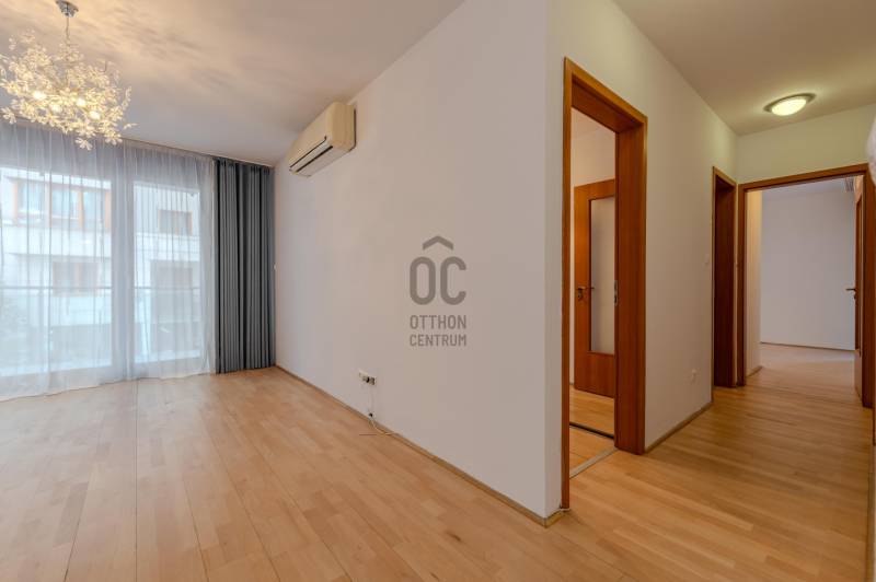 Exkluzív Otthon a Díjnyertes \"Római Kert\" Lakóparkban – Újlipótváros Szívében! (1132 Budapest, Visegrádi út 80.)Fedezze fel ezt a kivételes, újszerű (2022) ingatlant Budapest szívében, az Újlipótvárosban, ahol a modern, magas minőségű életstílus találkozik a csendes lakóparki környezet nyugalmával és a kiemelkedő infrastruktúrával!A Lakópark Előnyei és a Prémium KörnyezetA lakás egy 2002-ben átadott, az Autóker által épített \"Római Kert\" lakóparkban található. Ez az épületegyüttes:Többszörös díjnyertes: Kiemelkedő építészeti megoldásai és gyönyörű, gondozott zöldterülete miatt vált elismertté.Zárt és Biztonságos: A lakók kényelmét és biztonságát 24 órás portaszolgálat garantálja.Gondozott, Belső Park: A házak által körbefogott területen egy különlegesen szépen ápolt, díjnyertes közös díszkert biztosítja a nyugodt pihenést, távol a város zajától.Teremgarázs: A kényelmes és biztonságos parkolást a ház teremgarázsa teszi lehetővé (a terem garázshely vásárolható/bérelhető a ház más lakóitól).Lakás JellemzőkEz az I. emeleti, 91 négyzetméteres lakás kiváló állapotú, prémium kivitelezésű, ami a beköltözés utáni felújítási munkálatok aggodalmait teljesen kizárja.Elosztás: Négy tágas szoba, mely ideális választás családok, fiatal párok vagy befektetők számára egyaránt.Konyha: Világos nappali amerikai konyhával, modern dizájnnal és beépített bútorokkal.Kényelem: Két fürdőszoba és kettő összesen 14 négyzetméteres, intim terasz, ahonnan élvezheti a környék panorámáját.Fűtés: Házközponti fűtés egyedi méréssel, ami kedvező fűtési költségeket garantál.Kiemelkedő Újlipótvárosi InfrastruktúraAz Újlipótváros kiemelt lokációja nem csupán kényelmes, de kiemelkedően előnyös a mindennapi élet szempontjából is. A környék ellátottsága és a közlekedés tökéletes:Kultúra és Szabadidő: Sétatávolságra található a RaM – Radnóti Miklós Művelődési Központ, amely színházzal, könyvtárral, étteremmel (VakVarjú) és közösségi programokkal várja az itt lakókat.Oktatás: Bölcsőde, óvoda, iskola könnyen elérhető közelségben 1-2 perc séta.Közlekedés: Kiváló tömegközlekedési csomópontok (pl. 4-6-os villamos, M3 metró, 15-ös busz, trolibuszok) gyors elérést biztosítanak a belváros és a város bármely része felé.Szolgáltatások: Számos bolt, étterem, kávézó, gyógyszertár és a Duna-part közelsége teszi teljessé a kényelmet.A lakás akadálymentesített és biztonsági ajtóval felszerelt, így minden szempontból garantálja a gondtalan és kényelmes otthont.Ne maradjon le erről a páratlan lehetőségről! Tekintse meg személyesen, és tapasztalja meg a \"Római Kert\" lakópark nyújtotta prémium életérzést!