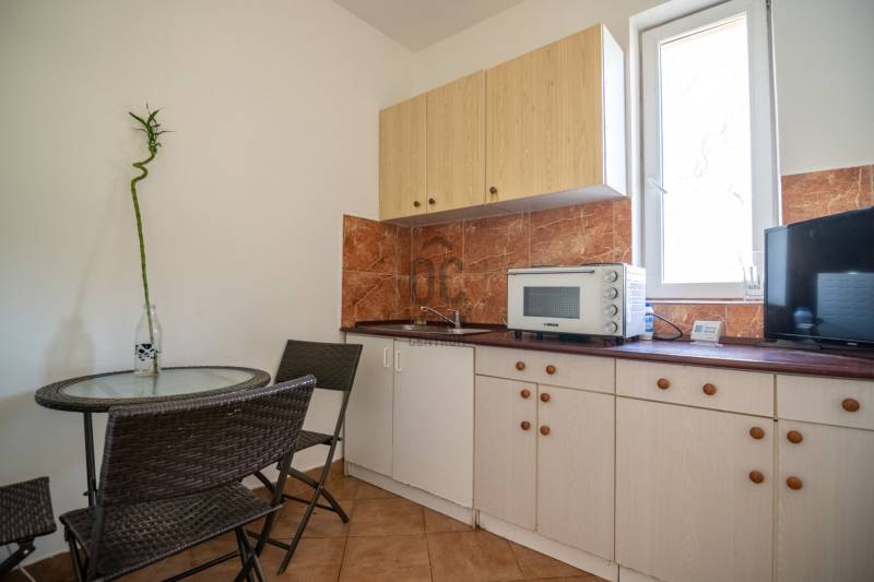 III. kerületben, Békásmegyeren, a kedvelt Ófaluban a Donát utcában, nyugodt, csendes környezetben,990 nm-es telken, 2004-ben épült sorházi garzonlakás elérhetővé vált.Néhány információ a házról:• Méret: 35 m2 plusz 11 m2 terasz• Szobák száma: 1db szoba, konyha, fürdő.• Külön fürdő és mosdó• Kert: 269nm sajátFőbb jellemzők:• gépészet: 2023-ban új gázkazán került beszerelésre• garázs -tárolóval Az új vásárcsarnok és közösségi tér könnyen elérhető, kiváló infrastruktúrával rendelkezik a környék, a tömegközlekedés kiváló, mivel több buszmegálló és a HÉV található körülbelül 10 percnyi sétára. Számtalan bevásárlási lehetőség adódik a közelben a Tesco, Lidl, Interspar, továbbá orvos, gyógyszertár, rendelőintézet, pékség, konditerem, étterem.