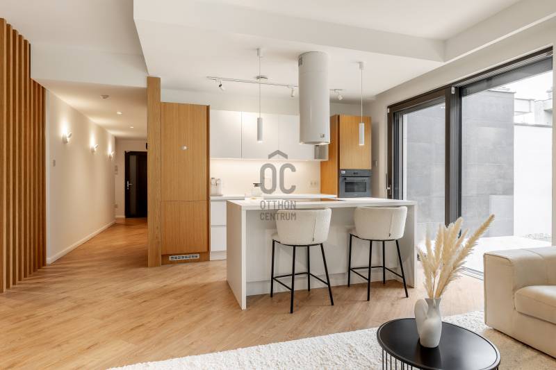 Kiadó napfényes, újépítésű luxuslakás a 12. kerületben – hatalmas PRIVÁT KERTTEL ÉS TERASSZAL!A Kissvábhegyi tanösvény közvetlen közelében, egy 2022-ben épült, exkluzív, magas MINŐSÉGŰ alacsony lakásszámú társasházban kínálunk bérlésre egy különösen VILÁGOS, MODERN, BÚTOROZOTT lakást.Bérleti díj: 1.000.000 Ft/hó, garázzsal és tárolóval EGYÜTT .LAKÁS JELLEMZŐI :-355 m² privát kert – a kert gondozását a közös költség tartalmazza-51,23 m²-es, tágas, intim terasz-Hatalmas üvegajtók és ablakok, fantasztikus fényviszonyokkal-Kedvező tájolás: nappali-konyha DK és DNY, egész nap napfényes-Teljes intimitás: a szomszéd háznak nincs ablaka erre a területre-Mennyezeti hűtés-fűtés – energiatakarékos, korszerű megoldás-Okosotthon rendszer-Alacsony rezsi-Szúnyoghálók Elektromos redőnyök és minden ablakon-2 wc a lakásban, egyik a fürdőszobábanmásik a háztartási helyiségbenFELSZERELTSÉG ÉS TÁROLÁS :-Prémium beépített konyha teljes gépesítéssel-Nagy méretű beépített szekrények a lakás több pontján-Mosógép és szárítógép-A lakás teljesen bútorozott, kiváló állapotúPARKOLÁS ÉS TÁROLÓ:-22,4 m²-es garázs, a legkényelmesebb helyen, közvetlenül az elektromos kapuval szemben-8,05 m²-es tároló a lakáshozBÉRLETI FELTÉTELEK :-2 havi kaució-1 gyermekes család bátran jöhet -Kisállat nem hozható-Minimum 1 év bérleti idő-Bérleti díj: 1.000.000 Ft/hó (garázs + tároló benne)LOKÁCIÓ:A 12. kerület egyik legkeresettebb, zöldövezeti részén, a Kissvábhegyi tanösvény szomszédságában. Csendes, elegáns környék, mégis könnyen megközelíthető.-Tömegközlekedéssel rendkívül jól megközelíthető: a környéken több buszmegálló és egy metróállomás is mindössze pár perc séta.-A környéken több kiváló óvoda és iskola található, valamint a közeli bevásárlóközpont kényelmesen elérhető, mindennapos vásárláshoz, szabadidőhöz, étkezéshez.A ház zöldövezeti, mégis kiválóan összeköttetésben áll a belvárossal és a főbb közlekedési csomópontokkal.A lakás azonnal költözhető, igényes bérlőjét várja.Köszönöm az érdeklődést, várom megkeresését!