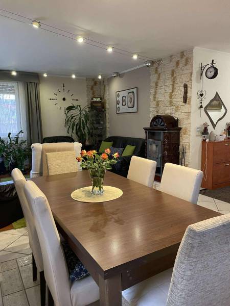 Kiváló lehetőség Pilisvörösváron! Egyszintes, újszerű családi ház!Ikerház, de nincs közös fala a szomszéddal, teljesen külön áll a két épület, a kapcsolódás kizárólag a gépkocsi beállónál van, ami egy nyitott pergola!Pilisvörösvár legkeresettebb kertvárosi részén, kiváló lokációval, hiánypótló egyszintes családi házat ajánlok figyelmébe. A ház felújítás nélkül, azonnal költözhető.A kényelmes, földszintes családi ház 84,73 négyzetméter, nappali plusz 3 szobával. A ház légkondicionált, összkomfortos, akadálymentesített, 15 cm szigeteléssel.A fűtés radiátoros gázfűtéssel és kandallóval működik.A kert szép, kellemes hangulatú, a nappali-étkezőből 21,25 m2-es terasz ad helyet a tökéletes pihenésre.Parkolás az udvarban, nyitott szaletli alatt. A telek 366 m2, a rezsi csak 40.000 forint körül van.A környék csendes, mégis könnyen elérhető minden. Jöjjön, nézze meg mielőbb! Érdemes!:)