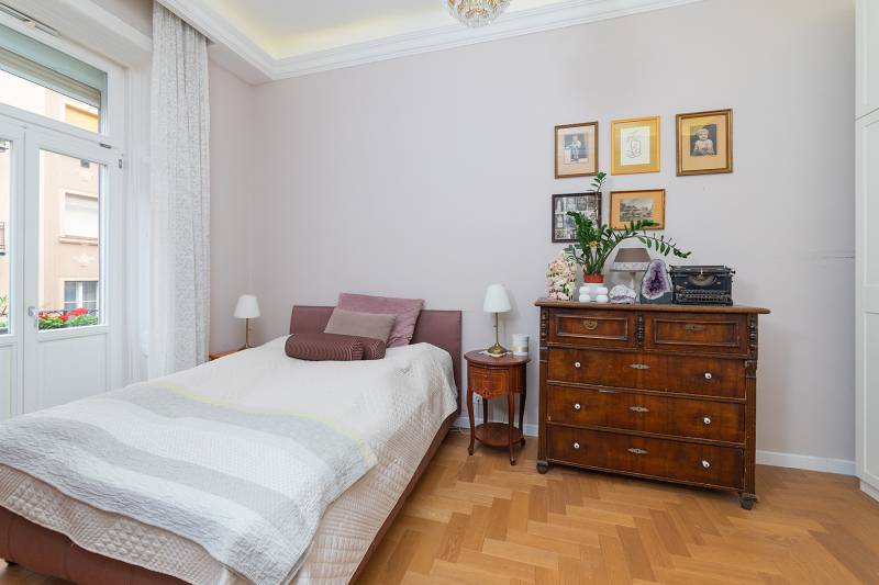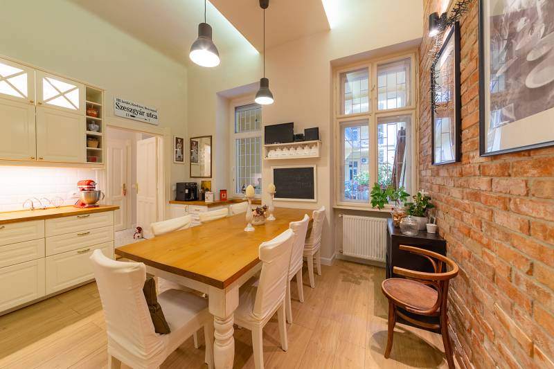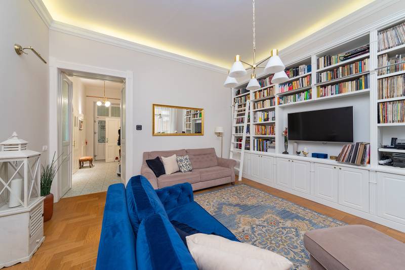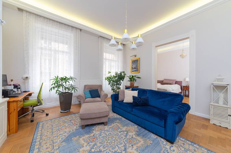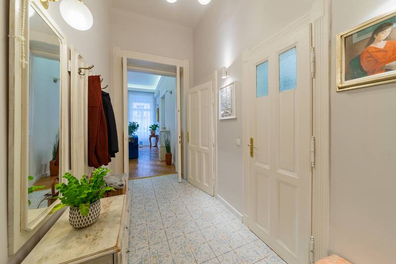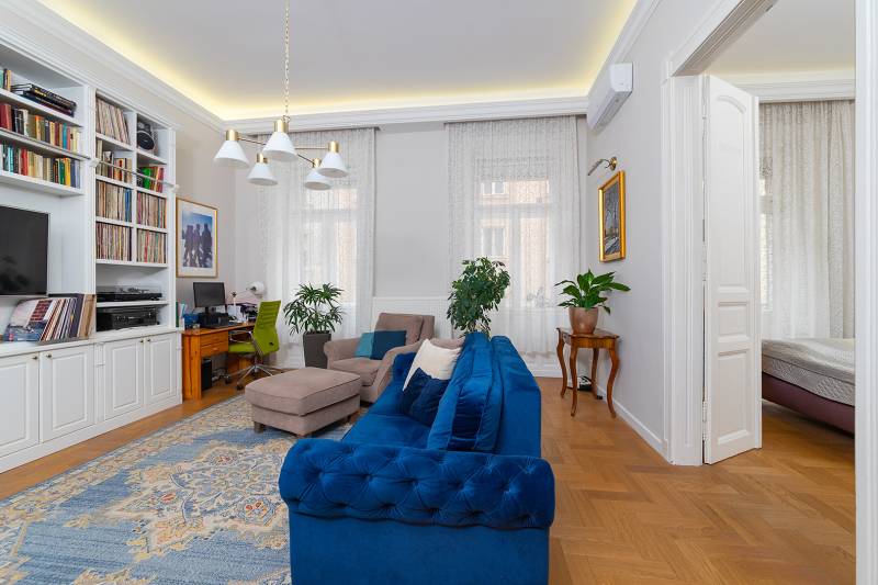 Lépjen be ebbe a 2020-ban teljeskörűen felújított, polgári otthonba, amely tökéletes harmóniát teremt az elegancia és a modern kényelem között. Ez az igényesen berendezett erkélyes, kétszobás lakás egy patinás, régi építésű házban található, amelynek köszönhetően a tágas terek és a családias hangulat azonnal magával ragadja. A kitűnő lokáció páratlan kényelmet biztosít, a Budai Várnegyed csupán néhány perc sétára van, felejthetetlen élményt nyújtva a város szívében. A két kényelmes szoba mellett a hatalmas konyha az otthon igazi központja, mely méltó díszlete lehet a mindennapi életnek és a vendégfogadásnak egyaránt. Ez az ingatlan egy valódi, értékálló ékszerdoboz a főváros egyik legkeresettebb részén.Konyha: a burkolat olasz kerámia lap, angol metro csempe (fehér és spanyol mintás kivitel), külső szeletes bontott téglafal. IKEÁ-s konyhabútor fiókvilágításokkal, motoros szelektív szeméttároló. Electrolux gőzpároló sütő, hob to hood rendszerű indukciós nagy méretű főzőlap és elszívó rendszer, AEG mosogatógép, amely applikációval vezérelhető, Bosch kombinált hűtőszekrény. Az előszobában és a mosdóban lengyel, a fürdőszobában magas kopásállóságú lengyel greslap padló burkolatok vannak, angol metro csempe - extra élzárókkal. A nappaliban és a hálószobában tölgyfa padló.A lakás fűtése kétkörös padlófűtés, a konyhában, a fürdőben és a wc-ben. A fürdőszobában extra meleg kör a kényelmes padlóérzetért és egy törölköző szárító. A radiátor csövek rejtettek.A fűtés és a hűtés GREE-indukciós hűtő-fűtő klímával is megoldható, applikációról vezérelhető. Az utcafronton a redőny motoros, amely applikációról vezérelhető. A vezetékek és a csövek az 5 éve végrehajtott lakásfelújításkor teljesen kicserélődtek, az ingatlan akkor gyakorlatilag a tégláig vissza lett bontva. A bejárati és az erkélyajtó is újra lett gyártatva, a 121 éves hagyományoknak megfelelően fából.Az erkély új vízszigetelést és új spanyol greslap burkolatot kapott, és kizárólag magas minőségű alapanyagokat építettek be.A nappaliban egy beépített, egyedileg készített könyvtár-polcrendszer, a hálószobában pedig egy nagy méretű gardróbszekrény található, kiváló asztalosmesterek profi munkái. A lakás előtt található 20 m2-es gangrész szokásjog alapján az új tulajdonos kényelmét szolgálja, így ide akár egy kerti bútor is kihelyezhető székekkel, mely a legnagyobb nyári melegben is hűvös marad.