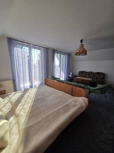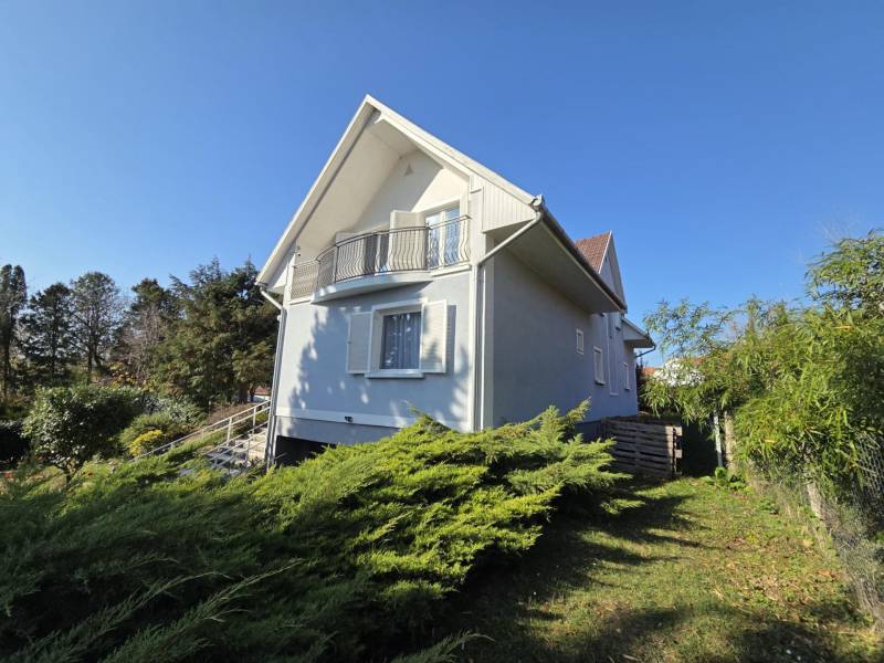 Ábrahámhegy belterületi részén található ez a 3 szintes, tégla építésű, családi házként bejegyzett ingatlan, mely elhelyezkedését tekintve nyugodt, csendes részen fekszik, mégis közel a Balaton partjához és Ábrahámhegy központjához.Az épület szintenkénti elosztása:- pinceszint/ alagsori rész: 2 különálló garázs (19m² és 18m²) , teakonyha (5m²) , zuhanyzó + wc (4m²), közlekedő (10m²), lépcsőház (8m²) és két nagyméretű tároló ( 26m² és 30m²)- földszinti rész: 2 hálószoba (15m² és 16m²) , konyha- étkező (25m²) , fürdőszoba (8m²), wc (2m²), közlekedő (10m²), lépcsőház (8m²) , nappali ( 27m²)- emelet: 3 hálószoba (2 12m²-es és egy 25m²) , nappali konyhakialakítási lehetőséggel (31m²) , 2 fürdőszoba (6-6m²), közlekedő (12m²), lépcsőház (8m²)A ház összközműves, fűtését gázkazán látja el, emellett pedig a földszinti részen, a nappaliban kiépített mesés cserépkályha is kellemes hőmérsékletet tud biztosítani a hűvösebb napokon.Kiépített riasztórendszer és kamera felel a biztonságért.A házhoz tartozó telekterület 1386 m²-es, minden oldalról kerítéssel határolt, automatizált kapuval.Az udvar szépen parkosított, intimitását a telket körülölelő sövényfal adja. Számos gyümölcsfa és örökzöld biztosítja az árnyékot a melegebb nyári napokon. Az udvar méretéből adódóan bőven jut hely még gyermekjátszótérnek, medencének, vagy nyári konyhának.Ajánlom az ingatlant mindazok figyelmébe, akik nagyobb családi otthont, nyaralót vagy balaton-parti befektetést keresnek akár turisztikai használatra is!Amennyiben kérdése merülne fel, vagy szeretné az épületet megtekinteni, úgy kérem keressen megadott elérhetőségeim egyikén!