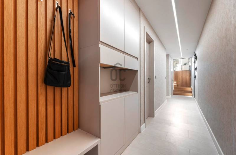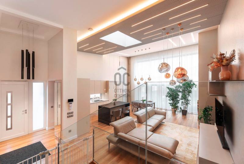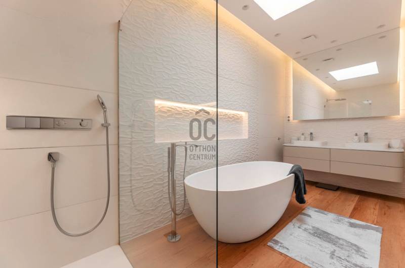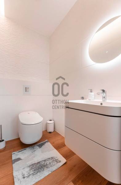 Eladásra kínálunk egy igazán különleges, prémium minőségben megépített, egyedi tervezésű ikerházat Debrecen egyik legkedveltebb kertvárosi részén, a Nagyerdő közvetlen közelében.Az ingatlan minden részletében a modern luxust, kényelmet és eleganciát képviseli – elrendezése, anyaghasználata és műszaki felszereltsége a legmagasabb színvonalú.A ház tágas, világos terekkel rendelkezik: nappali–étkező–konyha, 4 hálószoba, mozi- és szabadidőszoba, két fürdőszoba, valamint egy gyönyörű, parkosított kert nagy terasszal és fedett pergolával várja új tulajdonosát.Főbb jellemzők:- Alapterület: 266 m² (földszint + alagsor)- Telek: 670 m² rendezett kert, öntözőrendszerrel- Építés: prémium Porotherm falazat + 20 cm grafitos szigetelés- Energetikai besorolás: A++, napelemrendszerrel, önellátó energiafogyasztás- Hőszivattyús fűtés-hűtés (Daikin Altherma) – padló, fal és mennyezet hőleadással- Fatüzelésű SCHIEDEL KINGFIRE kandalló- Okosotthon-rendszer – applikáción keresztül vezérelhető fűtés, árnyékolás, világítás, biztonsági funkciók- Elektromos redőnyök és zsalúziák, motoros árnyékolók- Központi szellőzőrendszer, BWT vízlágyító és vízszűrő- Videó kaputelefon, riasztó, kamerarendszer, mozgásérzékelős kültéri világítás- Dupla garázs padlófűtéssel és elektromos Hörmann kapuval- Fedett, elektromosan mozgatható pergolás terasz (20 m²)- További 50 m² nyitott terasz és kerti tároló- Husqvarna robotfűnyíró, automata öntözés és esővízgyűjtő rendszerBelső terek:- Tágas, 6 méteres belmagasságú nappali hatalmas üvegfelületekkel- Olasz ARAN Cucine konyha, DEKTON kő munkalappal és Electrolux gépekkel- Szülői háló saját terasszal és Nagyerdőre néző panorámával- Luxus RAVAK és DURAVIT fürdőszobák- Hangulatos mozi/szabadidő szoba, mosókonyha, gépészeti helyiség- Egyedi, méretre gyártott beépített bútorok és exkluzív design világításElhelyezkedés:A ház a Nagyerdő közvetlen közelében, Debrecen egyik legértékesebb lakóövezetében helyezkedik el.Csendes, zöld környezet, mégis néhány percre az egyetemektől, a Klinikáktól és a belvárostól.Tökéletes választás:- Saját otthonnak, ahol minden részlet a kényelmet szolgálja- Exkluzív befektetésként, értékálló elhelyezkedéssel- Igényes, modern életstílust kedvelőknekEz a ház nem csupán egy ingatlan – egy életérzés, ahol a luxus és a természet harmóniában találkozik.Az ingatlan bútorozottan eladó, az ár rugalmasan egyeztethető.További információért és megtekintésért keressen bizalommal – akár hétvégén is!