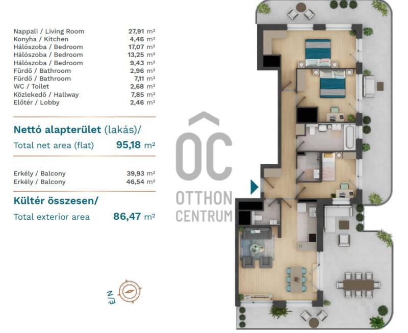 Erkély mérete: 86 m2