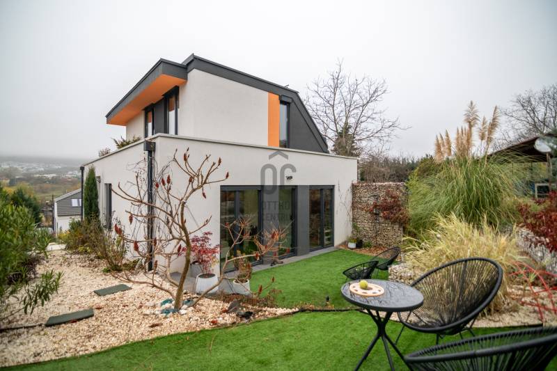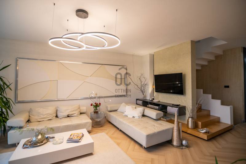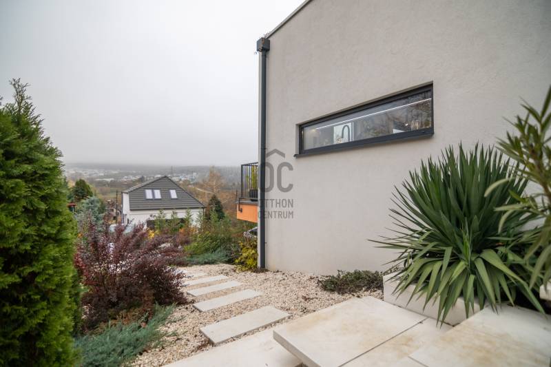 A III. kerület csendes, zöldövezeti részén, Ürömhegyen kínálunk eladásra egy minden részletében átgondolt, egyedi tervezésű otthont. A modern építészet és a természetközeli életstílus tökéletes harmóniában találkozik ebben a házban, amelyet kiemelkedő szakmai referenciákkal rendelkező belsőépítész alkotott meg.A ház egy rézsűs telek felső részén áll, így a panoráma és a fény egyszerre része a mindennapoknak. A letisztult formák, természetes anyagok és a napfényes terek elegáns, mégis otthonos hangulatot teremtenek.FŐBB JELLEMZŐK- Prokoncept építési rendszer, német fa szerkezeti elemek- A+ energetikai besorolás, levegő-víz hőszivattyús rendszer- Padlófűtés, mennyezethűtés-fűtés, hővisszanyerős szellőztetés előkészítve- Rehau nyílászárók, mindenhol motoros redőnyök- 20 millió Ft értékű egyedi konyha és beépített bútorzat- Beépített gépek: AEG főzőlap, Whirlpool sütő és mikro, Gorenje hűtő- Klarstein elszívó, fekete csaptelepek, screenüvegek a vizes helyiségekben- Jacuzzi-előkészítés a panorámás tetőteraszon- 2 autós garázs, elektromos töltő és napelem-előkészítésKERT ÉS KÜLSŐ TEREKA ház körül kialakított, mintegy 400 nm-es kert a természetes anyagokra és a rendezettségre épül.A geotextíliás alapozás és a dísznövényeknek köszönhetően a kert szinte gondozásmentes, mégis élő, harmonikus zöldfelületet kínál.A teraszról a panoráma a főszereplő: az előtető véd az esőtől és a naptól, a csöpögő rendszer pedig automatikusan öntözi a növényeket.A tér kialakítása lehetővé teszi jacuzzi vagy kisebb medence elhelyezését is – a nyugalom és a kényelem kompromisszumok nélkül adott.LOKÁCIÓ ÉS KÖZLEKEDÉS- 218-as buszmegálló pár lépésre található, közvetlen kapcsolatot biztosít Óbudával (Szentlélek tér).- Az Aranyvölgy vasútállomás 5 perc sétára elérhető, ahonnan a Nyugati pályaudvar 15 perc alatt megközelíthető.- Autóval az Árpád híd 15 perc alatt elérhető, a Bécsi úti bevásárlóközpontok (Tesco, Aldi, Praktiker, Decathlon) pedig mindössze néhány percre találhatók.A környék infrastruktúrája fejlett: iskola, óvoda, gyógyszertár, kisboltok és sportlehetőségek is könnyen elérhetők. A Csillaghegyi strandfürdő és uszoda autóval néhány perc, akárcsak a közeli túraútvonalak és kilátópontok.Földszint:Tágas, 42 nm-es nappali–konyha–étkező nagy üvegfelületekkel és dél-nyugati tájolással.Teljesen gépesített, beépített konyha étkezőpulttal kombinált főzőszigettel.Két külön nyíló, kertkapcsolatos hálószoba és zuhanyzós fürdő vendég-WC-vel.A nappaliból közvetlen kijárat az árnyékos teraszra és a gabion zuhanyfallal kialakított pihenőkertbe.Emelet:Világos, egybenyitott tér, amely igény szerint master bedroom + gardróbként is kialakítható.Külön fürdőszoba háztartási funkcióval és tárolókkal.A 28 nm-es panorámás tetőteraszról a Hármashatár-hegy látványa tárul elénk, jacuzzi-előkészítéssel.Garázsszint / Gépészet:Kétállásos garázs, automata kapuval.Szauna, kondiszoba vagy tároló kialakítására alkalmas hátsó tér.Hőszivattyús padló- és mennyezeti hűtés-fűtés, előkészített napelem és elektromos autótöltő csatlakozás.Ez az otthon azoknak szól, akik értékelik a modern építészet időtálló formavilágát, a természetes fényt, és a letisztult, gondosan megtervezett tereket.Ürömhegy egyik legszebb pontján található, ahol a panoráma, a nyugalom és a minőség valódi értékké válik.Amennyiben felkeltette az érdeklődését ez minden részletében művészien kidolgozott ingatlan, kérem keressen bizalommal!Díjmentes, bankfüggetlen hiteltanácsadással támogatjuk vevő ügyfeleinket a számukra legelőnyösebb finanszírozási döntések meghozatalában.Opcionálisan igénybe vehető kiegészítő szolgáltatásainkkal – mint ügyvédi közreműködés, energetikai tanúsítvány vagy villamos biztonsági felülvizsgálat – teljes körű szakmai támogatást nyújtunk az adásvétel folyamatának minden egyes lépésénél.
