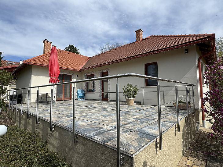SZENTENDRÉN, PISMÁNYON ELADÓ EGY FÖLDSZINTES CSALÁDI HÁZ!Telek mérete: 899 nmA KÖRNYÉK:Szentendrén, Pismány közepén, egy rövid zsákutca végében helyezkedik el, ahonnan gyönyörű panoráma nyílik a budai hegyekre. A háztól 10 PERC SÉTÁRA TALÁLHATÓ A BUSZMEGÁLLÓ, ami könnyű bejutást biztosít a város központjába, vagy éppen Budapestre.A HÁZ JELLEMZŐI:-A ház hasznos alapterülete: 107,7 nm.-Plusz egy 25,05 nm-es terasz.-2010-ben épült, 38 cm vastagságú POROTHERM téglából, a válaszfalak pedig 10-es POROTHERM téglából készültek.-Monolit vasbeton lemez födém.-A tető kerámia cseréppel fedett, 15 cm-es ásványi szálas hőszigeteléssel.-A homlokzaton 5 cm-es dryvit található, a padlóban 4 cm-es lépésálló szálas szigetelés.-A nyílászárók dupla thermo üvegezésűek amik fából vannak.-A fűtésért egy kondenzációs gázkazán felel, a hőleadók egyedileg készíttetett radiátorok. A fűtés csövezete vörös réz.-A kertben öntözőrendszer van kiépítve.-A telken belül több autó számára is van lehetőség a parkolásra.FINANSZÍROZÁS:Tehermentes, banki finanszírozással is megvásárolható, melyben irodánk ingyenes tanácsadással áll rendelkezésükre!VEVŐINK RÉSZÉRE A KÖZVETÍTÉS DÍJTALAN! A hirdetésben szereplő adatok tájékoztató jellegűek!