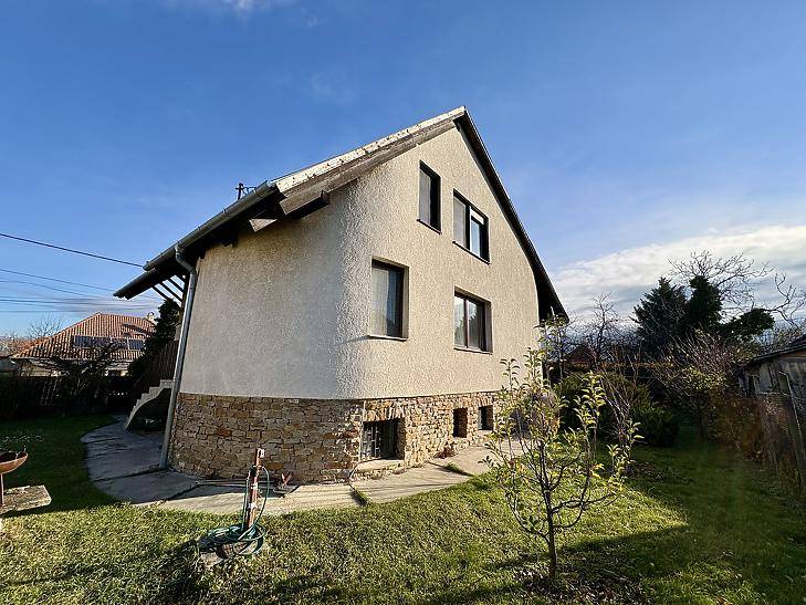 POMÁZON, A VÖRÖSMARTY LAKÓKERTBEN, ELADÓ EGY ÖNÁLLÓ CSALÁDI HÁZ!A KÖRNYÉK:Az ingatlantól a HÉV megálló csak 10 PERC sétatávra (750 méterre) található. Pomázon a városközponthoz közel helyezkedik el, de mégis nyugodt, családias részén. A környéken található a Pomázi Mátyás Király Általános Iskola és a Hétszínvirág Óvoda is. A LIDL 11 perc sétálva (800 méter), mindemellett a városközpont adta lehetőségek, mint például az orvosi rendelő, posta, COOP, benzinkút, gyógyszertár is könnyen elérhető.A HÁZ JELLEMZŐI:- A ház alapterülete 140,9 nm, a földszint 89,1 nm, a beépített tetőtér pedig 51,8 nm.-Plusz egy 54,5 nm-es pinceszint, egy 30,2 nm-es garázzsal.-Plusz egy 5,3 nm-es és egy 10 nm-es terasz.-1984-ben épült, B30-as téglából.-A tető 15 éve teljes cserén esett át.-A fűtésért egy gázkazán felel, ami radiátorokon adja le a meleget, a csövezete 3 éve cserélésre került.-A villanyhálózat vezetékezése alumínium.-A nyílászárók színezett műanyagok, a nappaliban fából készültek.FINANSZÍROZÁS:Tehermentes, banki finanszírozással is megvásárolható, melyben irodánk ingyenes tanácsadással áll rendelkezésükre! VEVŐINK RÉSZÉRE A KÖZVETÍTÉS DÍJTALAN! A hirdetésben szereplő adatok tájékoztató jellegűek!