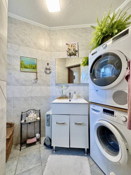 Eladóvá vált Fót, egyik legszebb részén, Királydombon, egy bruttó 110 nm-es, nettó 102 nm-es, 4 szobával+1 nappalival rendelkező, 2 fürdőszobával +1 mellékhelyiséggel, kamrával kiegészített, 200 nm-es telken húzódó, 2 teremgarázshellyel+1 nyitott kerítésen kívüli parkolóhellyel, 3 db tárolóval rendelkező, középső sorházi lakás!Az ingatlan 2011-ben épült, jelenlegi tulajdonosa és családja, 2017 óta lakják. A kert, évszaknak megfelelően, folyamatosan karbantartott, rendezett, kiépített locsoló rendszerrel rendelkezik, de jelenleg ez nincsen használva. A kert végében kialakításra került egy kis fedett sütögetőhely, ami ideális választás lehet családi beszélgetésekhez. Kiemelendő, hogy a kerti szerszámokat nem a lakáson kell keresztül cipelni, mivel a garázs, ami a teljes ház alatt húzódik, átjárást biztosít a kert felé. Számos pakolási, raktározási, tárolási lehetőséggel kiegészítve.A házba belépve, egy ideális méretű előszobába érkezünk, ahonnan egy vendégmosdó nyílik, jelenleg, mosókonyhának van használva, de egy újabb, zuhanyzós fürdőszobát is ki lehet belőle alakítani. Tovább haladván, az amerikaikonyhás-nappaliba érkezünk, ami közvetlen terasz kapcsolattal rendelkezik. A lépcső alatti területet kamraként hasznosítják, így a befőtteknek is van helye, Sok sorházi lakással ellentétben, itt a földszinten is van egy szoba, ami jelenleg dolgozószobának van kialakítva, de akár vendégszobának, hálószobának is használható. Az emeleten, a szülöi hálószoba, saját, zuhanyzós fürdőszobával rendelkezik, valamint a gyerekeknek is kialakítottak egy kádas fürdőszobát. A két másik szoba, közel azonos méretű, közös erkéllyel rendelkeznek. A bútorozást megkönnyítve, egy gardrób is helyet kapott előtérben. A kellemes hőérzetről gázcirkó gondoskodik, továbbá egy-egy db klíma került felszerelésre. A nyílászárók redőnnyel, illetve szúnyoghálóval ellátottak.A környék barátságos, családias, a közelben számos bevásárlási lehetőség, iskola, óvoda, bölcsőde, orvosi rendelő található, továbbá buszmegálló, vasútállomás 10 perc alatt elérhető.Ajánlanám ezt az ingatlant olyanoknak, akik nem szeretnének nagyobb felújítással foglalkozni, valamint Fót egyik legszebb, családias részén élnének, valamint olyanoknak, akik nem szeretnének órákat utazni a munkahelyükre.A ház megvásárlásához a megfelelő önerővel „már rendelkező”, de ezenfelül akár ***banki hitelfelvétellel, akár *** CSOK+ , akár ***lakáskassza megtakarítással és akár a ***babaváró program keretében felvehető / felhasználható pénzösszegből vásárló személyek megkeresését is szeretettel várom!Ha a leírtak és a látottak alapján felkeltettem az érdeklődését, keressen bizalommal akár hétvégén is!***Az igénylési / felhasználási feltételekkel kapcsolatban, valamint ezek ügyintézésben is, az Otthon Centrum hitelközvetítő munkatársával együtt, készséggel állok az Ön szíves rendelkezésére!