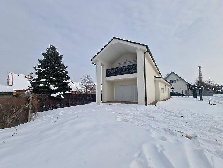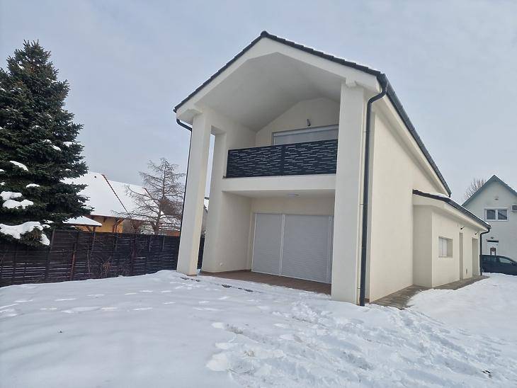 Dunakeszi egyik legcsendesebb, kertvárosi utcájában eladó egy 155 m²-es, ÚJ ÉPÍTÉSŰ, kétszintes, nappali + 3 szobás, önálló családi ház!Az ingatlan átmenő forgalomtól mentes környezetben helyezkedik el, ahol a modern építészet és a praktikus, kényelmes otthonérzet találkozik.Főbb jellemzők• Telek: 726 m²• Lakótér: 155 m², modern elosztással, két szinten• Helyiségek: nappali + 3 hálószoba, 2 fürdőszoba, mosókonyha, gardrób• Saját garázs az épületben• Fedett terasz a földszinten és az emeleten isMűszaki tartalom• Korszerű, hőszivattyús hűtő-fűtő rendszer• Padlófűtés és mennyezethűtés a maximális komfortért• Kiegészítő klímaberendezés• Prémium minőségű nyílászárók• Modern, energiahatékony szigetelés• Kulcsrakész átadás, beépített konyhabútorral