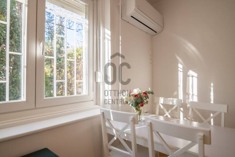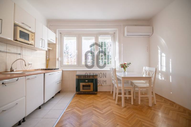 A csendes, átmenő forgalomtól mentes Köbölkút utcában, egy 12 lakásos, rendezett társasházban kínálunk megvételre egy 69 m²-es, nappali-konyhás + 3 szobás, frissen felújított tégla lakást.A lakás hangulatos, világos, kiváló elrendezésű, a szobák külön nyílnak, így tökéletes választás családoknak, pároknak vagy akár otthoni munkavégzéshez is.A felújítás során, a következő dolgok kerültek felújításra:– új, modern műanyag nyílászárók és minőségi beltéri ajtók kerültek beépítésre– a tágas konyha-nappaliban új CONCEPT AE Plus inverteres klíma gondoskodik a kellemes hőmérsékletről- új műanyag nyílászárók, 3 rétegű üveggel– a fűtést három szobában gázkonvektor, a többi helyiségben mennyezeti fűtőpanel biztosítja– a melegvizet bojler szolgáltatjaA beépített szekrények a hálószobában, dolgozószobában és a fürdőszobában rengeteg tárolóhelyet kínálnak – padlótól a mennyezetig.A lakás kertkapcsolatos, a dolgozószobából néhány lépcsőn lesétálva egy bájos kis kertbe érkezünk, ahol homokozó és hinta várja a család legkisebb tagjait.Elhelyezkedése:A környék igazi budai gyöngyszem: zöld, nyugodt, mégis minden karnyújtásnyira van.A 17-es és 61-es villamos 2 perc sétára, a MOM Park és a Móricz Zsigmond körtér is csak néhány megállóra található.A környéken több kiváló oktatási intézmény – például az Ádám Jenő Általános Iskola, Szent Imre Gimnázium, Szent Margit Gimnázium és az Általános Vállalkozási Főiskola – is elérhető pár percen belül.Kikapcsolódásra ott a Gellérthegy és a Budai Arborétum, ahol a természet közelsége, a panoráma és a város felett elterülő zöld nyugalom adja a mindennapok extra kényelmét.Egy olyan lakás, ahol a városi élet és a természet közelsége tökéletes harmóniában találkozik.Ha szeretne egy azonnal költözhető, igényesen felújított, otthonos budai lakást, ezt érdemes megnéznie!