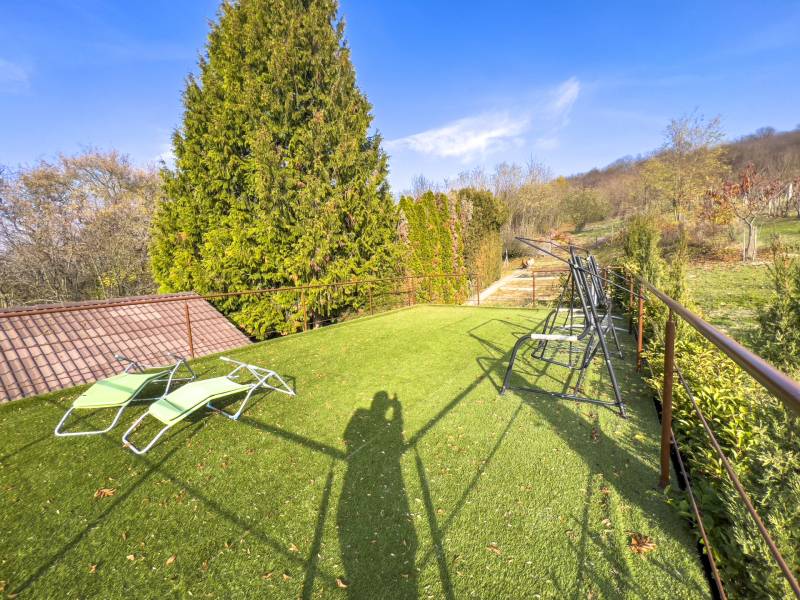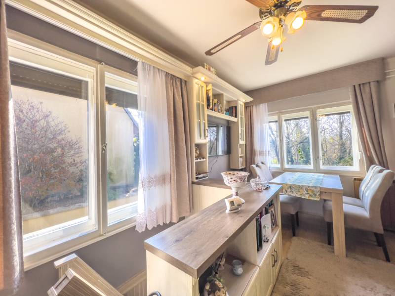 Az Alcsútdoboz szívében, Fejér vármegyében elhelyezkedő ingatlanunk ideális választás fiatal felnőttek számára, akik egy csendes, zöld környezetben szeretnének otthonra lelni. Ez a használt, de kiváló állapotú ház 72 négyzetméteren terül el, és egy impozáns, 2000 négyzetméteres telken helyezkedik el. Az ingatlan több szobás illetve egy fürdőszobás kialakítással rendelkezik, ami tökéletesen megfelel olyan családoknak, akik a nyugalmat és a természet közelségét keresik. Az ingatlanhoz tartozó 15 négyzetméteres terasz ideális helyszín a reggeli kávé elfogyasztására vagy baráti összejövetelek lebonyolítására, miközben a gyönyörű panorámát élvezheti. A telken található még egy 25 négyzetméteres összkomfortos vendégház fürdőszobával, egy 16 négyzetméteres rönkház szaunával illetve egy 45 négyzetméteres 3,5 méter belmagasságú garázs.A két ház külön helyrajzi számon helyezkedik el, saját víz és villany bekötéssel. Mind a két épületben 3x32 Amper biztosítja az áramellátást. A ház fűtése elektromos központi rendszerrel megoldott, ami biztosítja a kellemes hőmérsékletet a téli hónapokban, míg a klímaberendezés a nyári melegben nyújt hűsítő kényelmet. A vendégházban illetve a rönkszaunában elektromos Nobo fütőpanelek találhatók. Az ingatlan tehermentes, így azonnal birtokba vehető. A környék csendes, biztonságos, és számos lehetőséget kínál a szabadidő eltöltésére. A zöld otthon élményét tovább fokozza a telekhez tartozó automata öntözőrendszer, amely megkönnyíti a kertgondozást. A beépített bútorok és szekrények praktikus tárolási megoldásokat kínálnak, míg a szauna különleges kényeztetést nyújt a mindennapokban. A közlekedés szempontjából az ingatlan kiváló helyen található, hiszen könnyen megközelíthető autóval, és a tömegközlekedési lehetőségek is rendelkezésre állnak. A közeli városok, mint Székesfehérvár és a környező települések gyorsan elérhetők, így a mindennapi élethez szükséges infrastruktúra könnyen hozzáférhető. Ez az ingatlan nem csupán egy ház, hanem egy lehetőség arra, hogy egy nyugodt, zöld környezetben éljen, ahol a természet közelsége és a modern kényelem találkozik. Ha felkeltette érdeklődését, vagy további kérdései lennének, ne habozzon keresni minket bizalommal.Szívesen segítünk Önnek megtalálni álmai otthonát!