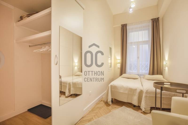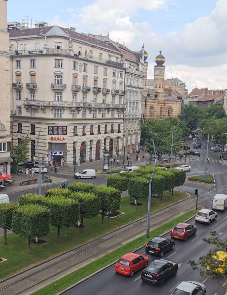 A Deák tér és az Astoria között, egy impozáns épületben található az ingatlan, mely három önálló lakásra lett kialakítva. Az összenyitása is megoldható, mert úgy lett kialakítva, ezért szét-vagy összeköltözőknek, irodának, rendelőnek, kiadásra tökéletes választás!Ingatlan:- 234 nm, 3,8 m belmagasságú, felújított, gáz-cirkó fűtésű, inverteres klímás 8 szobás, 3 fürdőszobás+WC-s, 2 önálló WC+kézmosós, teraszos lakás.- A szobák, részben utcai-részben pedig udvari nézetűek.- Az ingatlan egy akadálymentes, liftes társasház, II. emeletén helyezkedik el.Környezet:A legfelkapottabb része a fővárosnak, ahol sétatávolságra van a Zsinagóga, az Andrássy út, a Belváros, a Madách tér, az Astoria.