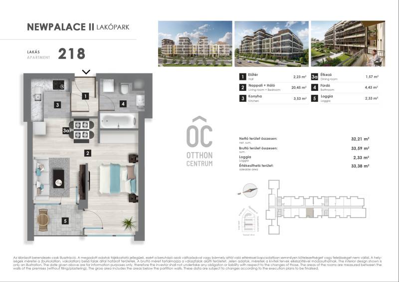 Projekt bemutatásaNew Palace II. ütemA New Palace a XIII. kerület csendes részén épül. A megújult kertvárosias környezet a pesti oldal egyik legkedveltebb részei közé tartozik, az itt élők egyszerre élvezhetik a csöndes kis utcák nyugalmát és a belváros közelségét.A társasház különleges, extravagáns homlokzatával egyedi fiatalos dizájnjával, kiemelkedik a környező épületek közül és ezáltal lesz majd sokáig a környék ismert és meghatározó tájékozódási pontja. A már eddig is komoly fejlődésen és megújuláson átesett városrész a projekt megvalósulásával beírja magát a kerület új városrészei közé.A földszint + 12 emelet magas épületet elegáns, kertépítők által tervezet parkok veszik körül, megreformálva a társasház környezetét is. A zárt, csak a társasház lakói által megközelíthető udvaron fákkal, cserjékkel tarkított, füvesített zöldkert kerül kialakításra.A lakások két elegáns, egymástól elkülönülő lobbyn keresztül közelíthetőek meg, lépcsőházanként két-két lifttel. A lakáskínálatban az egyszobás lakástól egészen a négyszobásig mindenféle elosztású megoldás megtalálható, a kínálatban alig van két egyforma lakás. Minden lakás rendelkezik erkéllyel vagy terasszal, a földszinti és néhány exkluzív emeleti lakás pedig, intenzív zöldtetővel, saját kertrésszel.Figyelembe véve a jövő elvárásait, a társasház modern, környezetbarát, mennyezeti hűtő, -fűtő rendszerrel ellátott.Vevőinknek lehetőségük nyílik arra is, hogy megvásárolt otthonukat az utolsó részletig személyre szabhassák: módosítással élhetnek otthonuk elosztása tekintetében is, továbbá széles kollekcióból választhatnak meleg- és hideg burkolatokat. Az alapáras burkolatokon felül, elérhetőek feláras termékek is, mely biztosítja, hogy személyiségük otthonukban is vissza tükröződhessen.Az infrastruktúra is magáért beszél: a közeli Váci út kiváló közlekedése és bevásárlási lehetőségei, a megújult 3-as metró Gyöngyösi utcai megállója rövid sétával elérhető, hasonlóan az idilli hangulatú Gyöngyösi sétányhoz, mely a kerület egyik legkedveltebb részei közé tartozik. Szintén pár perc sétatávolságra a folyamatosan megújuló és minden igényt kielégítő Duna Pláza bevásárlóközpont (benne: SPAR, gyógyszertár, Rossmann, DM, Médiamarkt, tisztító, fodrászatok, virágbolt, Libri könyvesbolt, papír-írószerbolt és számos ruházati bolt. Kényelmesen megoldható a napi fogyasztási cikkek beszerzése is a nap bármely órájában a közvetlen közelben lévő Tesco áruházban és az üzletsoron lévő boltokban. A lakópark tágabb vonzáskörzetében de még mindig elérhető távolságban találjuk Újpest-központot, a Népszigetet és az Újpest vasútállomást.Irodánkban a legtöbb XIII. kerületi beruházás lakásai elérhetőek ügyfeleink számára.A jelen adatok tájékoztató jellegűek, ezért a Beruházó (sem a hirdető) azok változásával, vagy bármely attól való eltéréssel kapcsolatban semmilyen kötelezettséget, vagy felelősséget nem vállal.Az alaprajzokon ábrázolt berendezési tárgyak és bútorok, a burkolatok megjelenése nem képezi a szerződés tárgyát. A pontos felszereltségről a műszaki leírásban olvashat bővebben.Az aktuális lakáskínálatról és árakról érdeklődjön telefonon!