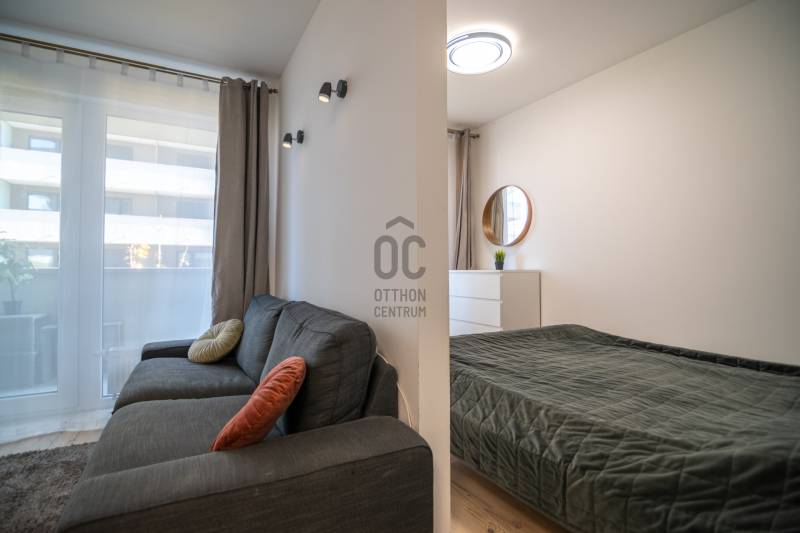 Budapest egyik leggyorsabban fejlődő városrészében a IX. kerületi Allure Residenceben kínálunk eladásra egy kiváló elrendezésű fiatalos lakást.A K-i fekvésnek és a hatlamas üveg felületeknek köszönhetően rendkívül világos 3. emeleti lakásban egy hálószoba is kialakításra került, ami így még praktikusabban kihasználható.A 7 nm-es terasz a gondozott parkosított belső udvarra néz.A lakás házközponti fűtéssel és egyedi klímával ellátott. A társasház közös használatú területei gondozottak, a bejáratnál portaszolgálat fogadja az ingatlanba érkezőket.A lakás berendezett, a konyhabútor és a tágas előszobai beépített szekrény a vételárban van, minden további bútor külön megállapodás tárgyát képezi.Lokáció:Közelben bevásárási lehetőség ( Spar, Lurdy- ház, gyógyszertár) , illetve edzőterem sétatávolságra található.A Dunapart, a MÜPA, 3 perc séta távolságban a Bálna, Váci utca, Lánchíd – 15 percen belül elérhető.Ideális első lakásként, irodaként vagy hosszútávú befektetésként is egy dinamikusan fejlődő városrészben.Ez az ingatlan a \"Felező csomag\" megbízási portfólióhoz tartozik. Részletek az Otthon Centrum weboldalán.