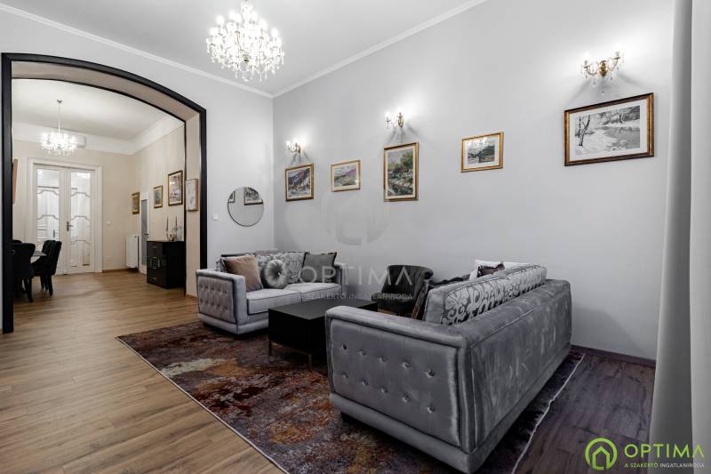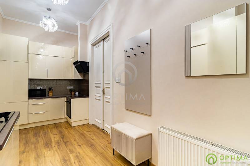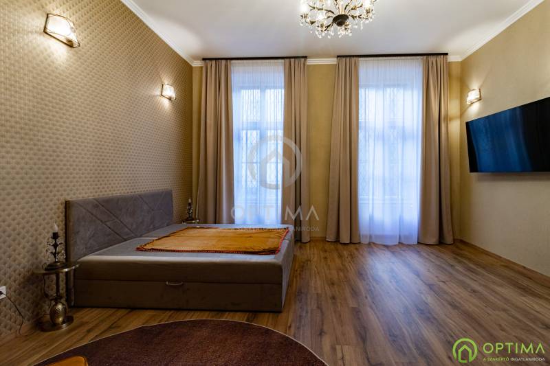 TELJESKÖRŰEN FELÚJÍTOTT, 2 SZOBÁS LAKÁS A PALOTANEGYEDBEN Budapest VIII. kerületének legkeresettebb városrészében, a Palotanegyedben, a Szentkirályi utcában kínálom megvételre ezt a 95 m2 alapterületű, I. emeleti, 2 szobás téglalakást. A ház külső és belső homlokzata is kiváló állapotban van. A lakás egy külön zárt folyosóról közelíthető meg, így csak 1 közvetlen szomszéd van. A lakás TELJES KÖRŰ felújításon esett át ebben az évben: - cserére kerültek a vezetékek (villany-, gáz- és vízvezetékek egyaránt), - beépítésre kerültek új hang- és hőszigetelő műanyag ablakok, - cserére kerületek a burkolatok a konyhában és a fürdőben egyaránt, - beépítésre került egy gépesített konyhabútor,- kialakításra került a cirkó fűtés, - beépítésre került légkondicionáló. A közös költség összege havonta 29.000 Ft, amely tartalmazza a szokásos tételeket, mint a LIFT használatot, a szemét elszállítását, a lépcsőház tisztántartását. A közüzemi fogyasztások mind egyedi mérőórák alapján kerülnek elszámolásra. A KÉPEKEN LÁTHATÓ BÚTOROK ÉS BERENDEZÉSI TÁRGYAK A VÉTELÁR RÉSZÉT KÉPEZIK. Az ingatlan BELVÁROSI elhelyezkedésének köszönhetően BEFEKTETÉSI céllal való vásárlása is kitűnő választás lehet. A lakás megtekintése miatt VÁROM HÍVÁSÁT akár hétvégén vagy az esti órákban egyaránt!