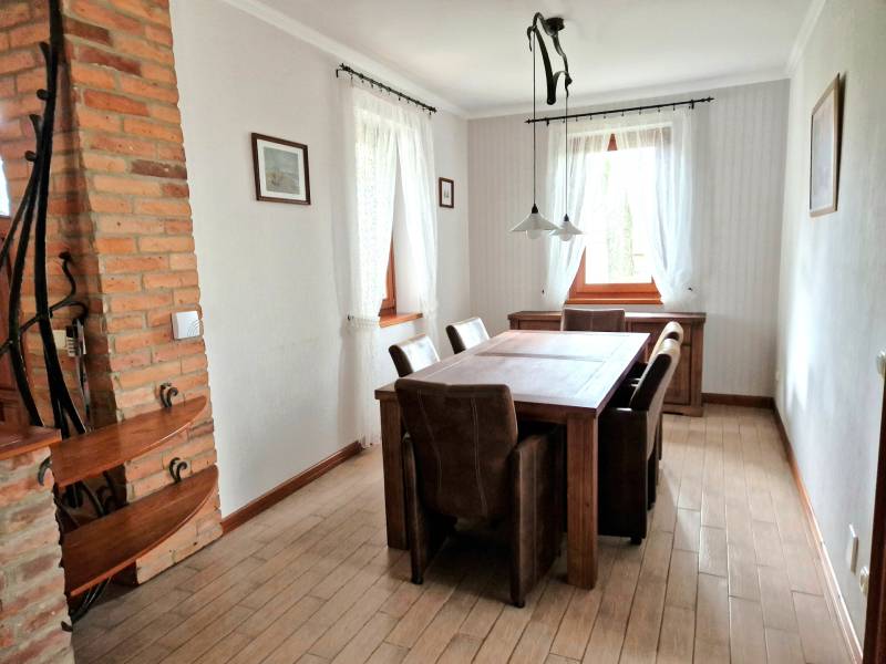 Értékesítésre kínálunk Debrecen- Homokkert csendes utcájában egy igényesen tervezett, dupla komfortos, nappali+ 4 szobás,2003. évben épült, önálló, 45 cm-es porotherm téglából épült családi házat, melynek nettó alapterülete 161 m2.Ez a kivételes ingatlan MAGAS MINŐSÉGŰ anyagok felhasználásával épült, minden részletében az igényesség és a kényelem jegyében született. Az ingatlanba kiváló minőségű kültéri és beltéri fa nyílászárók kerültek beépítésre, az ablakok rovarhálóval felszereltek. Az ingatlan melegét víztárolós gázkazán biztosítja, padló és radiátoros hőleadókkal, továbbá a nappaliban egy hangulatos kandalló is rendelkezésre áll, a nyári kellemes hőmérséklet klímával megoldott.A ház három szinten terül el, hogy maximális kényelmet biztosítson a családja részére.A földszinten található :a tágas nappali-étkező egy légtérben, modern, gépesített konyha, vendégwc, szülői hálószoba, melyhez tartozik egy saját gardrób és egy nagyméretű fürdőszoba, melyben a kabin mellett egy kétszemélyes infraszauna ( Wellis) is helyett kapott.A tetőtérben található: egy kisebb méretű vendégszoba, két hálószoba, melyek kényelmesek és világosak, tartozik hozzájuk egy nagyméretű gardrób és egy káddal és kabinnal felszerelt fürdőszoba.Az alagsorban található: két állásos garázs, nagy méretű mosókonyha, kondiszoba, barkácsszoba.A kertben automata öntözőrendszer került kiépítésre, melynek működtetése a fúrt kútról megoldott. A kertben egy fedett kemencés kerti főzőhely is kialakításra került. A 30 nm-es, motoros árnyékolóval ellátott fedett terasz lehetőséget biztosít a pihenésre, családi összejövetelekre. A terasz mellett egy nagyméretű, árnyékot adó hársfa található. Az ingatlan további paraméterei a teljesség igénye nélkül:- NY-i tájolás- központi vízlágyító berendezés- központi porszívó, - központi riasztó berendezés,- villás zsindelyfedés,- egyedi tüzikovácsolt lámpatestek és lépcsőkorlát, - tv csatlakozó majdnem minden helyiségben,- rámpafűtés,- rejtett kapumozgató,- egyedi tüzikovácsolt kerítés,- 62,61 m2-es duplagarázs,- automata garázskapu,- kerti hangulat világítás,- közelben tömegközlekedés, számos oktatási intézmény, bevásárlási lehetőségek, éttermek, belváros percek alatt elérhető.A környék biztonságos és csendes, ideális választás családok számára, akik értékelik a nyugalmat és a zöld környezetet.Ha magas minőségű ingatlant keres Debrecen egyik kedvelt környékén, ne hagyja ki ezt a lehetőséget!További kérdéseivel, megtekintéssel kapcsolatban várom szíves hívását a hét minden napján!