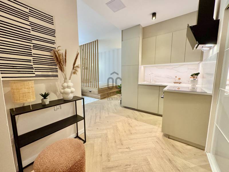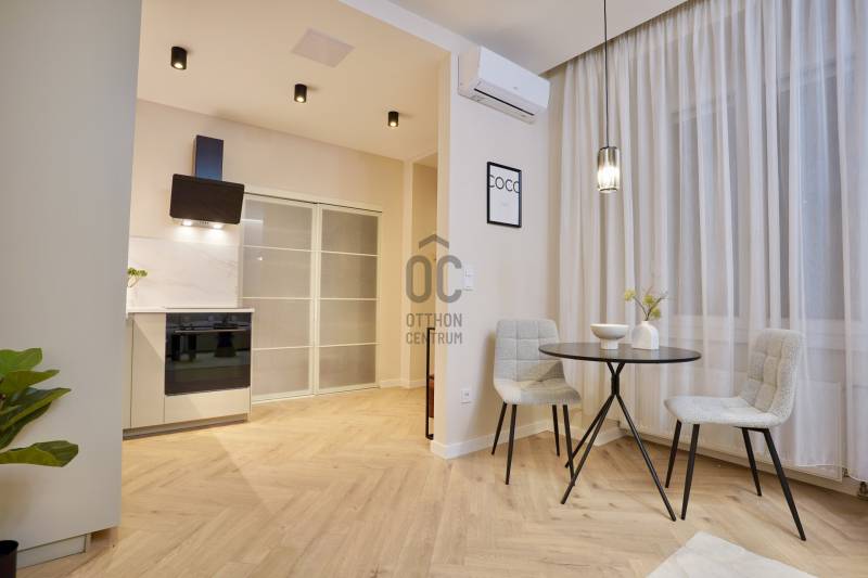 Prémium kialakítású, első lakóját váró költségmentesen állapotú, 1 szobás otthon elérhető akár azonnali költözéssel!Eladásra kínálok a XIII. kerületben, a Tátra utcában egy frissen, teljeskörű műszaki és esztétikai felújításon és átalakításon átesett igényesen kivitelezett, bruttó 32 m2-es lakást.A város egyik legnépszerűbb városrészében elhelyezkedő apartman, a páratlan lokációjának és pezsgő belvárosi hangulatának köszönhetően a lakhatáson túl kiadási célból is tökéletes választás.A tulajdonos a kialakítás során a minőséget és a kényelmet helyezte előtérbe. A lakás minden helyisége a modern hangulatot és az összhangot sugározza, egyedi dekorációs megoldásokkal és praktikus helykihasználással.Az ingatlanba belépve magával ragad a letisztultság, a harmonikus színvilág és stílusos megjelenés. A lakás fűtését hátközponti fűtés biztosítja, radiátorok segíségével.Kialakítás:- Nappali-étkező, hálósarok, konyha, fürdőszoba, előszoba, lichthof-tárolóÁllapot:A gondos odafigyelésnek és a minőségi belső elemeknek köszönhetően az ingatlan tökéletes, költségmentes állapotban van.A 2025-ben elvégzett felújítás magába foglalta:- a teljes víz, csatorna és villanyvezeték hálózat cseréjét, melynek része volt az új kapcsolók, konnektorok beszerelése. - a műanyag nyílászárók, beltéri ajtók, valamint a biztonsági bejárati ajtó cseréjét- teljes új, elegáns, egyedi tervezésű konyhabútort és berendezéseit- a luxus érzetét kölcsönző fürdőszoba kialakítását épített zuhannyal- lichthof kifestése, és burkolása, hogy igényesebb hangulatot keltsenA lakásban új álmennyezet lett kiépítve, valamint ízlésesen kiválasztott hideg és melegburkolatokat kapott a lakás.A lakásban elérhető prémium bútorok és dekorelemek, megegyezés tárgyát képezik.Költségek:- víz, villany: fogyasztás alapján, saját mérőórával-fűtés: távhő által, társasház felé fizetendő- közös költség: 8068.-FtA lakásról:- 2,8 m belmagasság- földszinten található- DNY-i tájolású- megfelelő fényviszonyok- gipszkarton szigetelés a falakon- prémium minőségű, gépesített konyha – gránit mosogatótálca, elegáns fali panel, beépített főzőlap és sütő, konyhai páraelszívó, beépített hűtőszekrény, ledcsík- a stílusos fürdőben épített zuhany, minőségi szaniterek, törölközőszárító, kijárat a lichhot-ra, valamint a különböző anyagok és burkolatok harmonikus párosítása nyugalmat árasztó színekkel - hálórész, beépített és kihúzható szekrényekkel és térelválasztóval felszerelve, ezáltal praktikus és letisztult megoldás.- egyedi design lámpák és bútorok- nagy kopásállóságú, vízálló laminált parketta- nagyméretű, kétrétegű műanyag ablakok- frissen festett- praktikus gardrób az előszobában- bejárati ajtó biztonsági- légkondíciónálóHázról:A társasház rendezett pénzügyi kerettel és megtakarítással rendelkezik. Történelmi múlttal is rendelkező szépen karban tartott lakóház, néhány éve homlokzati felújításon végigmenve. Az épület aljában egy művész galéria is található.A lakóközösség kultúrált és csendes, udvara rendezett, taakrításon rendszeresen átesik. (Gondnok a földszinten lakik.)Környezet:A lakás a XIII. kerület a belvároshoz legközelebb eső pontján helyezkedik el.A környék rendezett, biztonságos, csendes mellékutcákkal, zöldfelületekkel és kultúrális programokkal. Ezen csomópontok néhány perces sétával elérhetőek. A közelben található a közkedvelt Szent István park, játszótérrel, kutyafuttatóval és padokkal várja a látogatókat. Közelben található még számos élelmiszerüzlet, gyógyszertár, szórakozóhely, belvárosi piac, étteremek, kávézók, pékségek, barkács és papírboltok, könyvesbolt, posta, bankfiók, coworking iroda, színház stb. A legközelebbi bevásárló központ a Westend City Center. Közlekedés szempontjából a 3-as metró, a 4-6-os villamos, a 75-76-os troli valamint számos belvárosi buszvonallal elérhető a lakás.Befektetőknek és lakhatási célból vásárlóknak is kifejezetten előnyős vétel. Központi elhelyezkedése kényelmes közlekedést és elérhetőséget biztosít. A modern és fiataos lakás, a diákok és fiatal pályakezdők számára is ideális választás.Az ingatlan megvásárlásához jelzáloghitel, CSOK, Babaváró is igénybe vehető, melynek ügyintézésében közvetlenül tudunk segítséget nyújtani.Ha felkeltette az ingatlan az érdeklődését és szívesen lenne új lakója ennek kedves és korrekt tulajdonos birtokában lévő lakásnak, úgy forduljon hozzám maximális bizalommal és mindenben segítek.